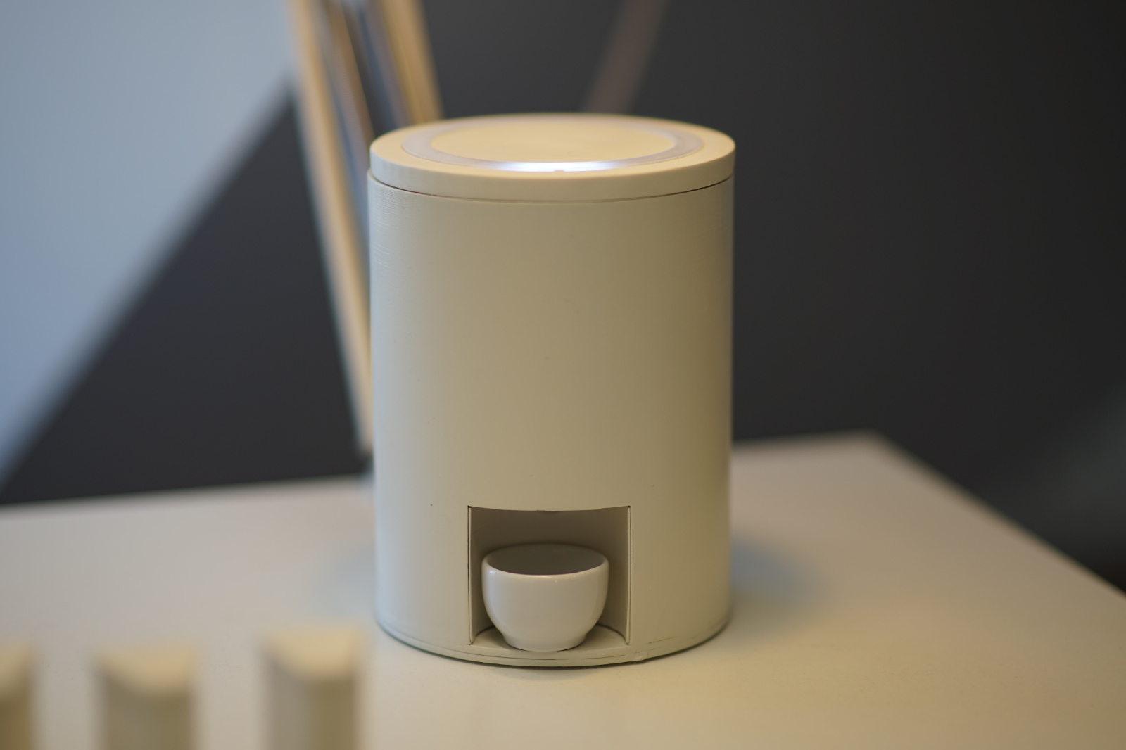 Das Gerät ist minimalistisch gehalten, damit ältere Menschen, die über wenig bis keine Erfahrung mit technischen Geräten verfügen, es einfach haben. Die Kommunikation zwischen dem Menschen und der Maschine sei hier besonders wichtig. Der Tablettenspender kommuniziere visuell sowie auch akustisch und gibt ein grünes Licht wieder, wenn die Tabletten ausgegeben wurden und eingenommen werden können. Unterstützt werde die Kommunikation hierbei durch eine Animation, die auf die Ausgabe hindeute.