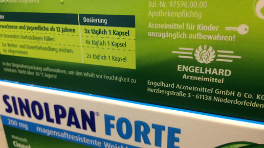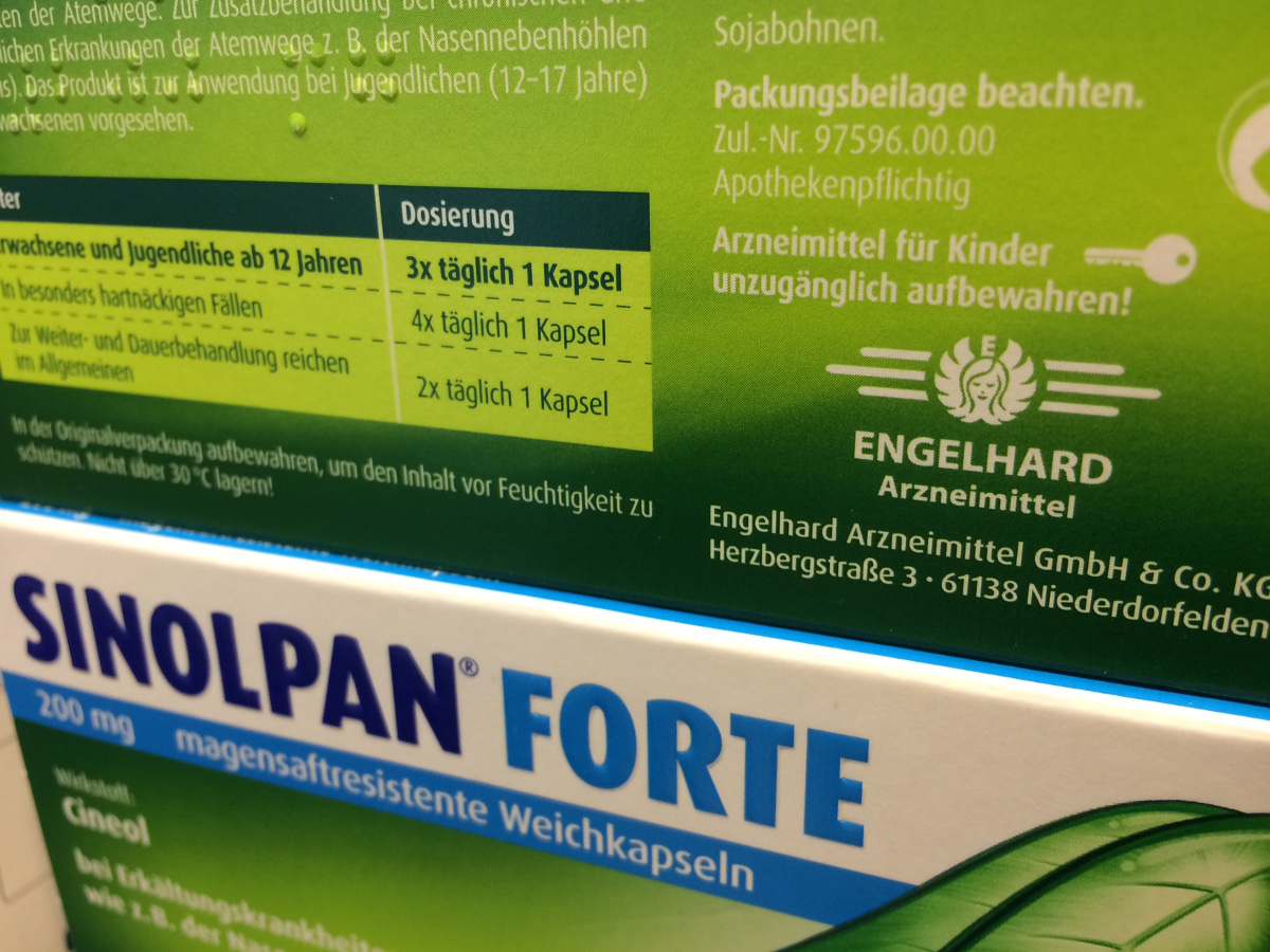 Sinolpan ist seit 15. Oktober auf dem Markt. Die Cineol-haltigen Kapseln sind zu 100 mg und als Forte-Variante zu 200 mg erhältlich. Die apothekenpflichtigen Weichkapseln können sowohl zur Behandlung einer Bronchitis als auch als Zusatzbehandlung einer Nasennebenhöhlenentzündung eingesetzt werden.
