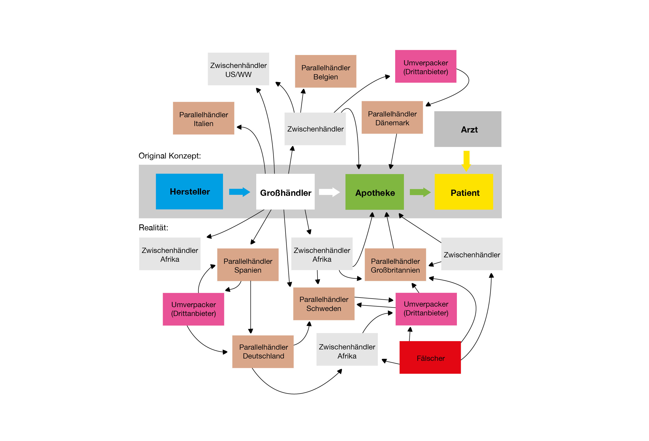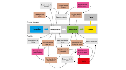 Das ideale Konzept „Hersteller – Großhändler – Apotheke – Patient“ spiegelt den aktuellen Apothekenalltag daher nicht unbedingt wider. Die Lieferketten sind viel komplizierter. Der innerhalb der EU gesetzlich vorgesehene Parallelhandel begünstigt laut BKA die Möglichkeit, gefälschte Arzneimittel in den legalen deutschen Markt einzubringen. Arzneimittel können auf diesem Weg zahlreiche Handelsstationen in verschiedenen EU-Mitgliedstaaten durchlaufen. Der beziehende Parallelhändler müsse immer nur seinen direkten Anbieter verifizieren. „Der gesamte Handelsweg des Arzneimittels und dessen tatsächliche Herkunft bleiben ihm verborgen.“ Illegale Arzneimittel würden vor allem aus Süd- und Osteuropa, Südostasien und auch aus Afrika nach Deutschland gelangen.