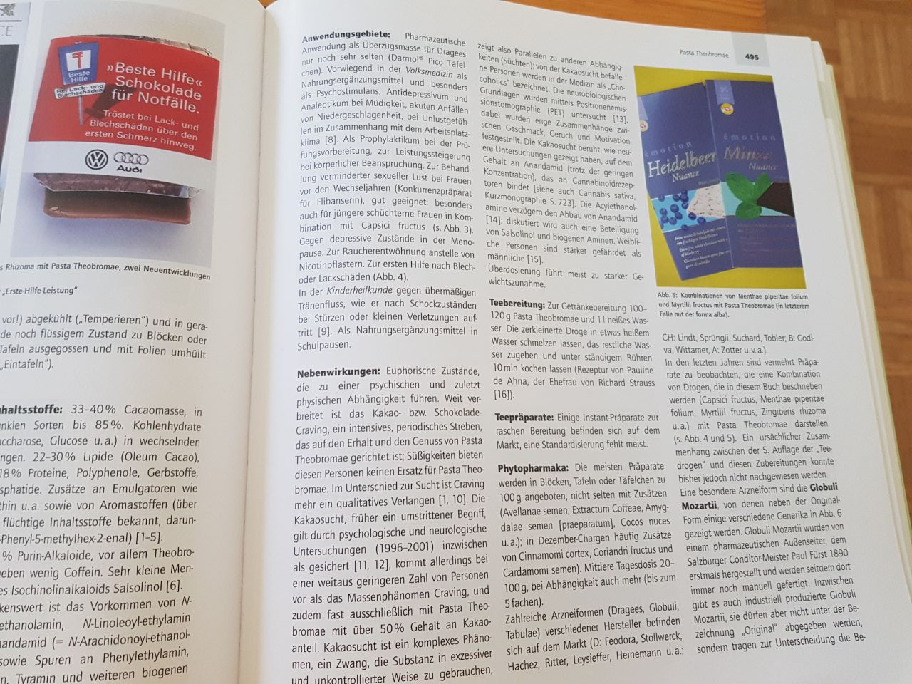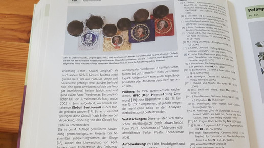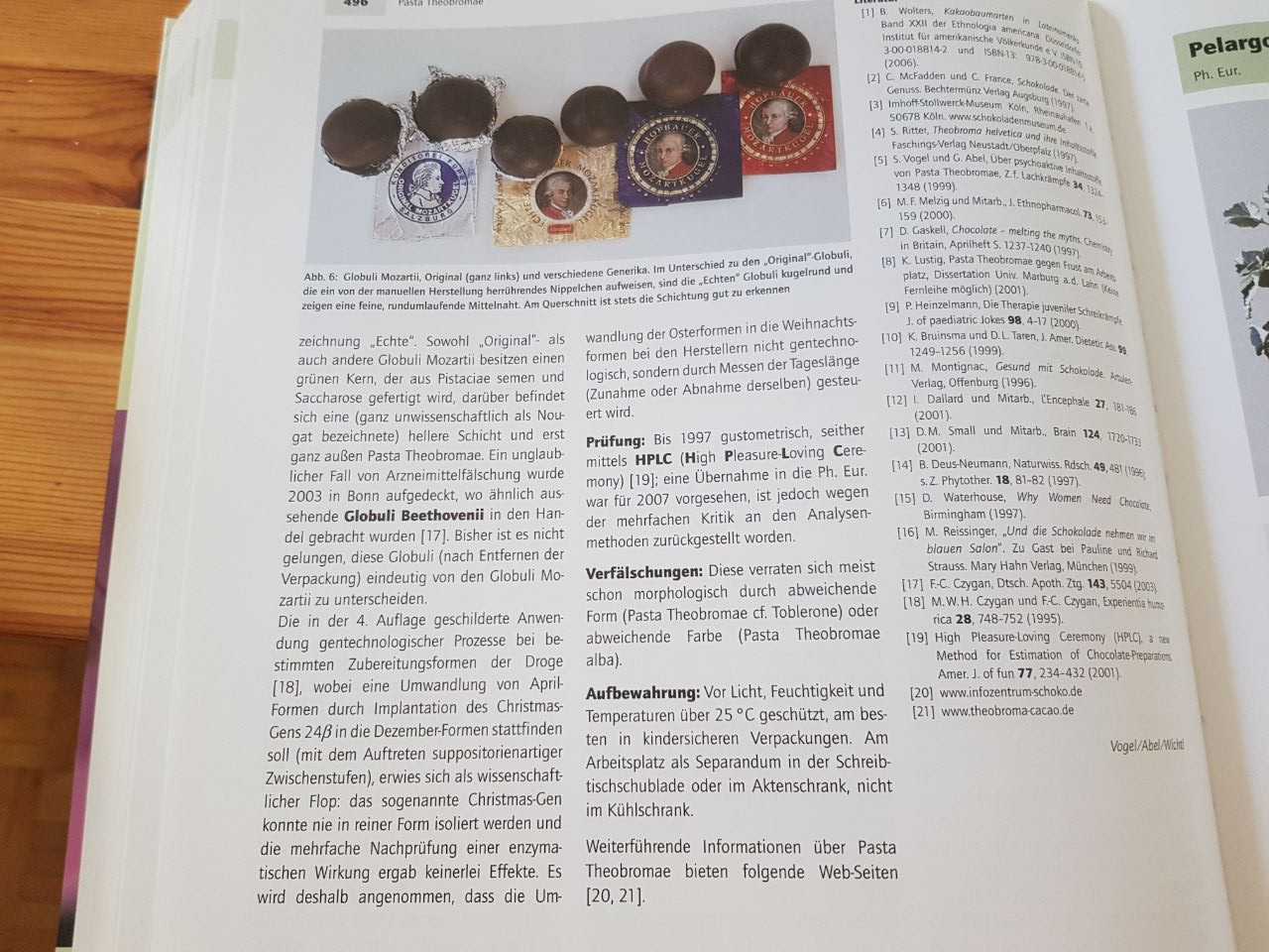 Auch die Globuli Mozartii – die Mozartkugeln – sind dort erwähnt und im Original neben verschiedenen „Generika“ abgebildet. Diese speziellen Globuli werden auch im „Mutschler Arzneimittelwirkungen“ im Kapitel Kakao behandelt.