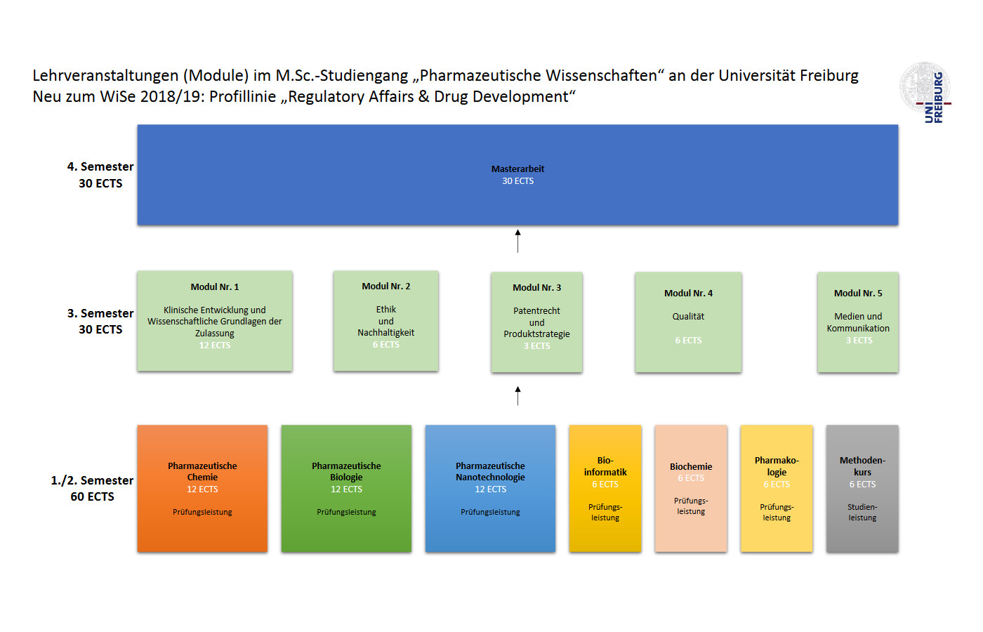 Die Universität Freiburg bietet erstmals zum Wintersemester 2018/19 im Rahmen des Masterstudiengangs „Pharmazeutische Wissenschaften“ die neue Profillinie „Regulatory Affairs and Drug Development“ an. Absolventen der naturwissenschaftlichen Fächer wie Chemie, Biologie, Pharmazeutischen Wissenschaften und auch der Pharmazie können sich so auf eine Tätigkeit in der pharmazeutischen Industrie spezialisieren.