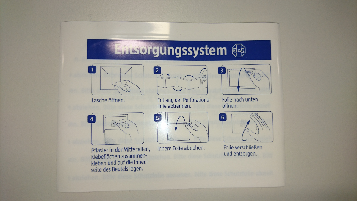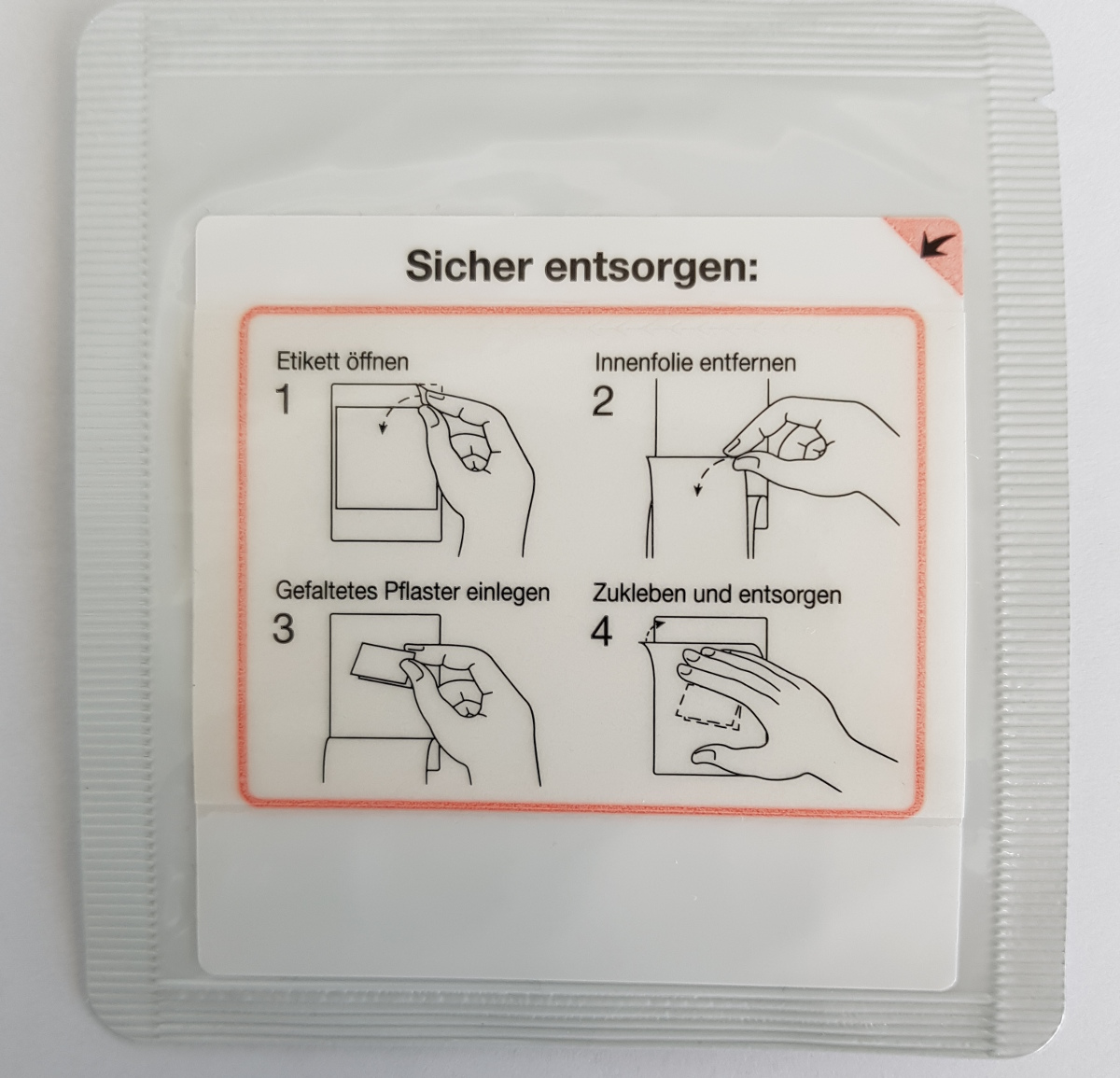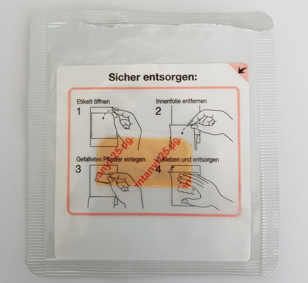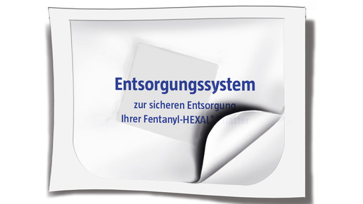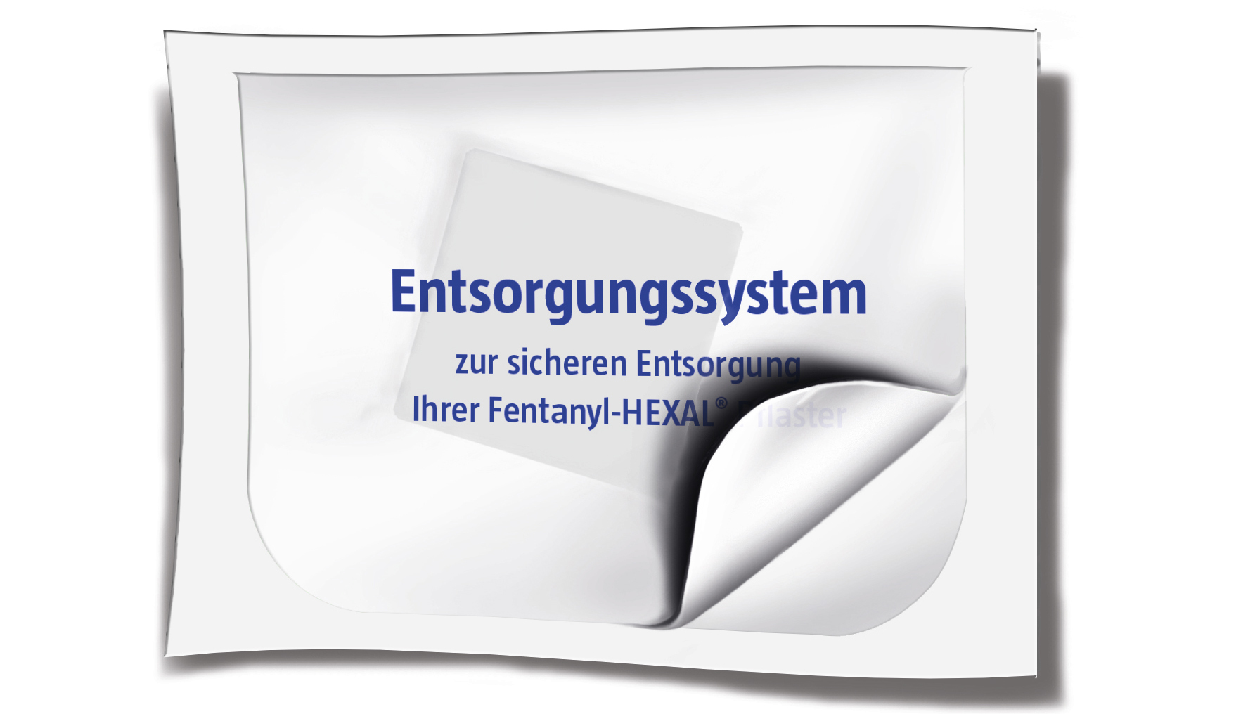 Fentanyl-Pflastern von Hexal liegt seit 2015 ein Entsorgungssystem bei. „Hochleistungsklebefolien sorgen dafür, dass das zu entsorgende Pflaster von zwei Folien fest und sicher umschlossen wird und somit sicher und effektiv entsorgt werden kann“. Nachdem das Pflaster in der Mitte nach innen zusammenklebt wurde, wird es auf die Innenseite des Beutels geklebt und dieser dann verschlossen.