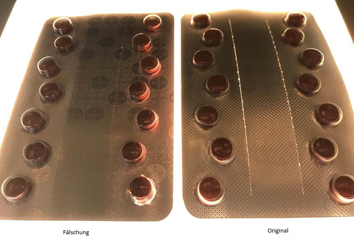 Die Perforationen der Blister seien im Gegensatz zum Original nicht durchstochen. Auch die Faltschachtel und die Patienteninformation Bayer seien als Fälschungen identifiziert worden. Die gefälschten Filmtabletten ähneln in Farbe, Größe und Stanzung dem Original. „Der Originalhersteller konnte jedoch die Identität der originalen Wirk- und Inhaltsstoffe nicht bestätigen.“