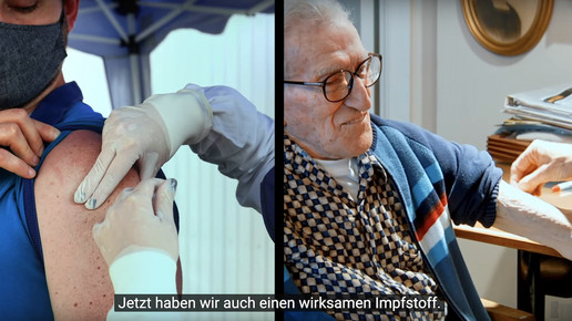 Erzählt wird die Geschichte des Coronavirus – vom ersten Auftreten in Wuhan über den ersten Lockdown bis hin zur Entwicklung der Impfstoffe. Zu sehen sind Bundeskanzlerin Angela Merkel und natürlich Gesundheitsminister Jens Spahn. Am Ende wird darauf verwiesen, dass jetzt ein wirksamer Impfstoff vorliegt und dass man sich impfen lassen soll. Ganz zum Schluss wird die Hotline 116 117 eingeblendet, an die sich Interessenten wenden sollen.