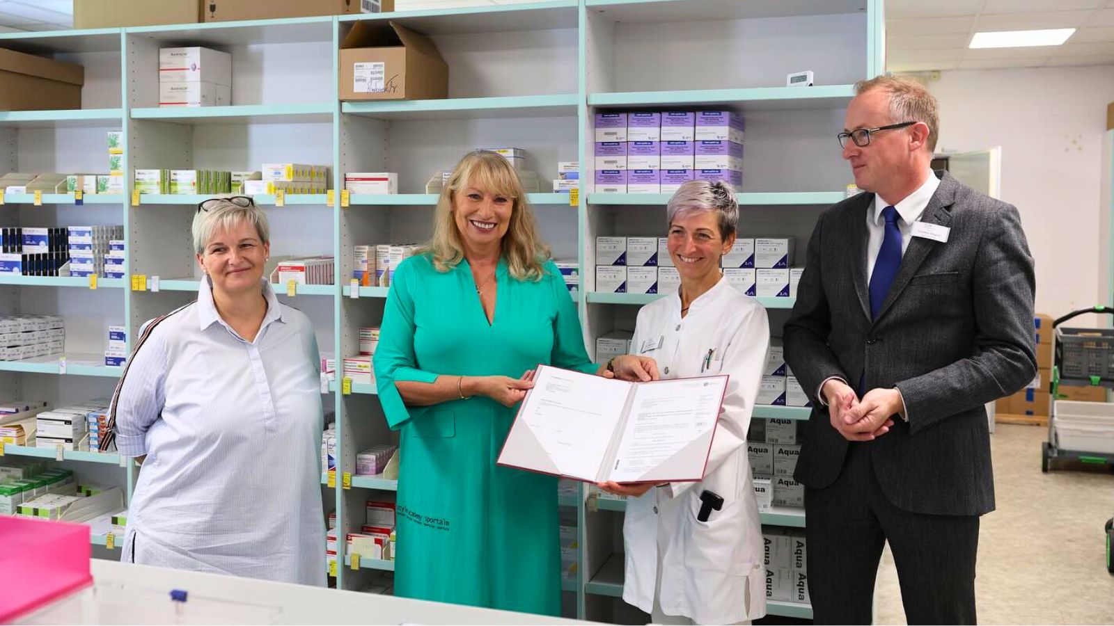Das Rudolf Virchow Klinikum Glauchau in Sachsen bekommt eine neue Zentralapotheke. Gefördert wird die neue Krankenhausapotheke mit etwa 2,55 Millionen Euro. Gesundheitsministerin Petra Köpping (SPD) übergab vergangene Woche den Förderbescheid an Apothekenleiterin Anja Bergmann und den Klinikchef Christian Wagner.