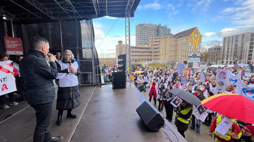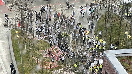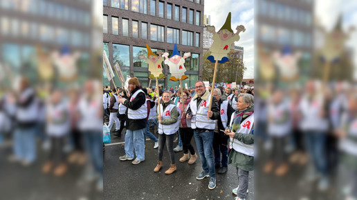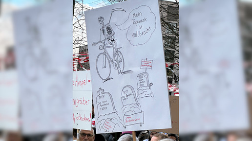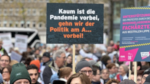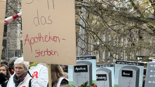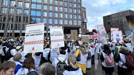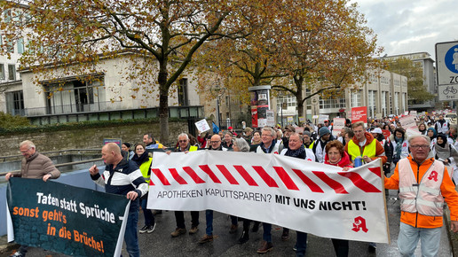 Zu einer zentralen gemeinsamen Kundgebung in Dortmund kamen nach Polizeiangaben knapp 5000 Apotheker:innen, Mediziner:innen und deren Mitarbeitende, um ihrem Ärger über die Gesundheitspolitik der Bundesregierung Luft zu machen. Mit Trillerpfeifen und Transparenten zogen sie durch die Innenstadt und riefen unter anderem: „Wir sind hier, wir sind laut, weil man uns Gesundheit klaut!“