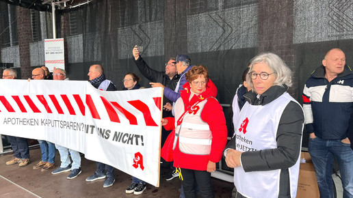 Zur Kundgebung kamen auch Apothekenteams aus Hessen, Rheinland-Pfalz und dem Saarland. Die Abda hat den gesamten November als Protestmonat ausgerufen – mit tageweisen Schließungen in jeweils mehren Bundesländern.