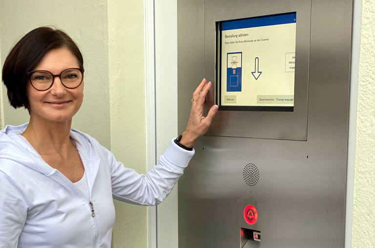 Aus dieser Situation heraus sei die Idee zu einem Abholfach entstanden. Die Inhaberin entschied sich für ein Abgabeterminal von BD Rowa. „Wir wollten einen Anschluss an den Kommissionierautomaten, um Prozesse zu reduzieren und zu standardisieren.“ Anders als bei Abholfächern sei das System flexibel. „Es gibt keine begrenzte Anzahl an Fächern, die ich bestücken muss, und wenn ein Kunde doch in die Apotheke kommt, kann ich ihm den Abholer auch hier mitgeben.“