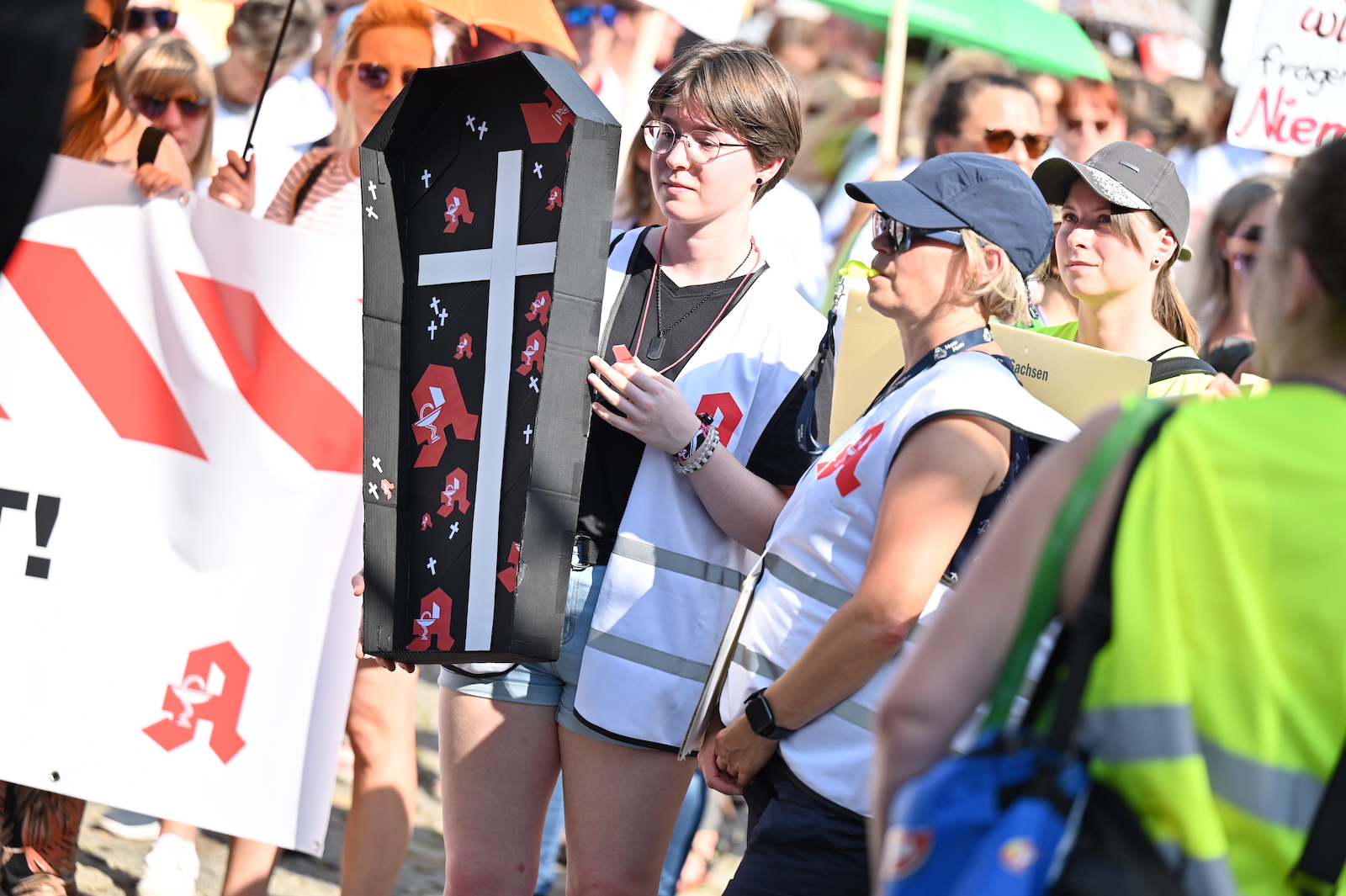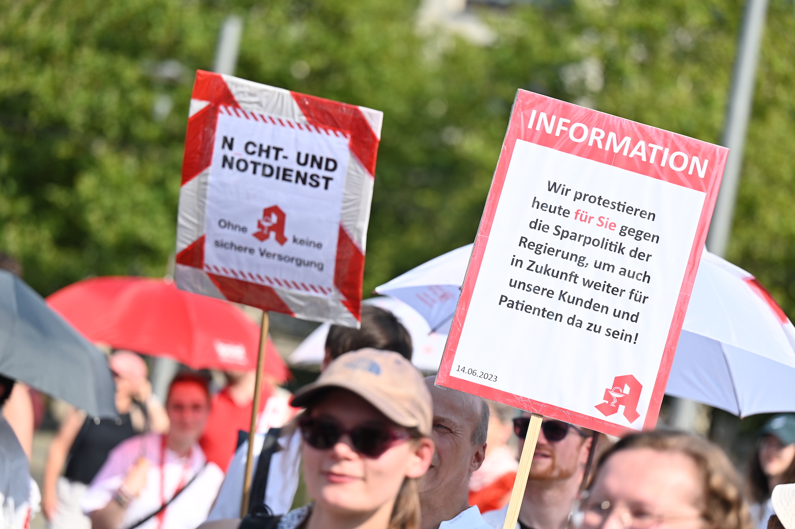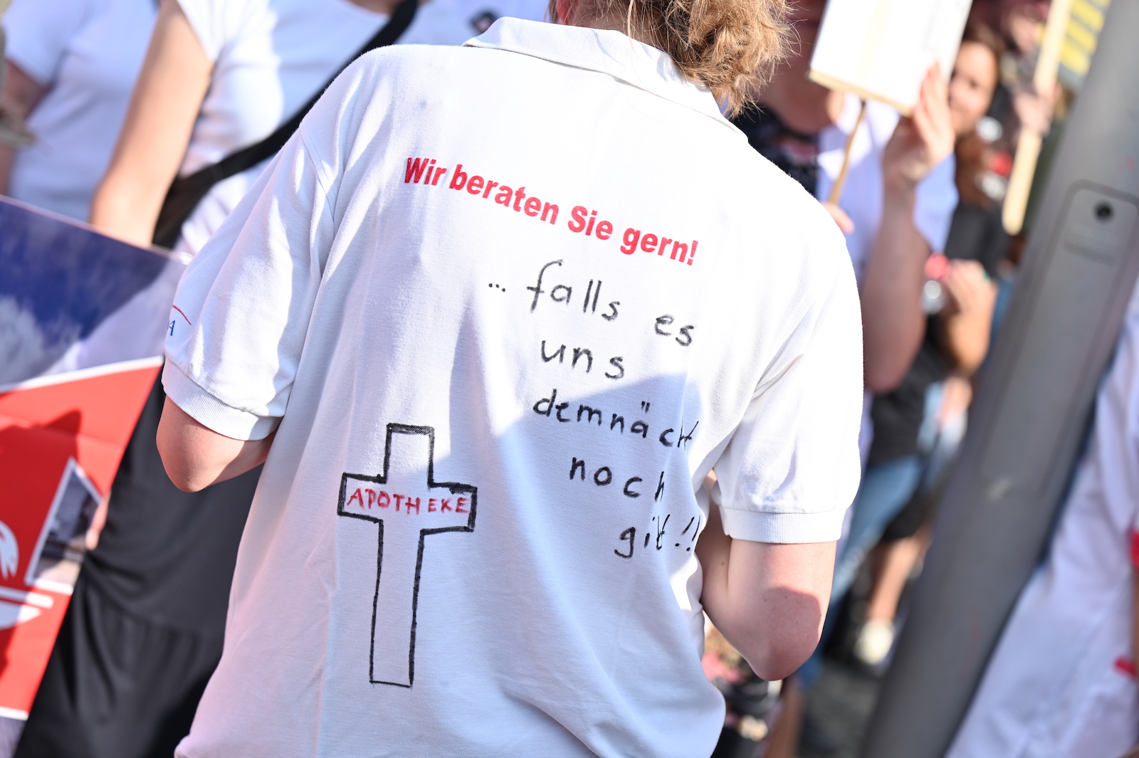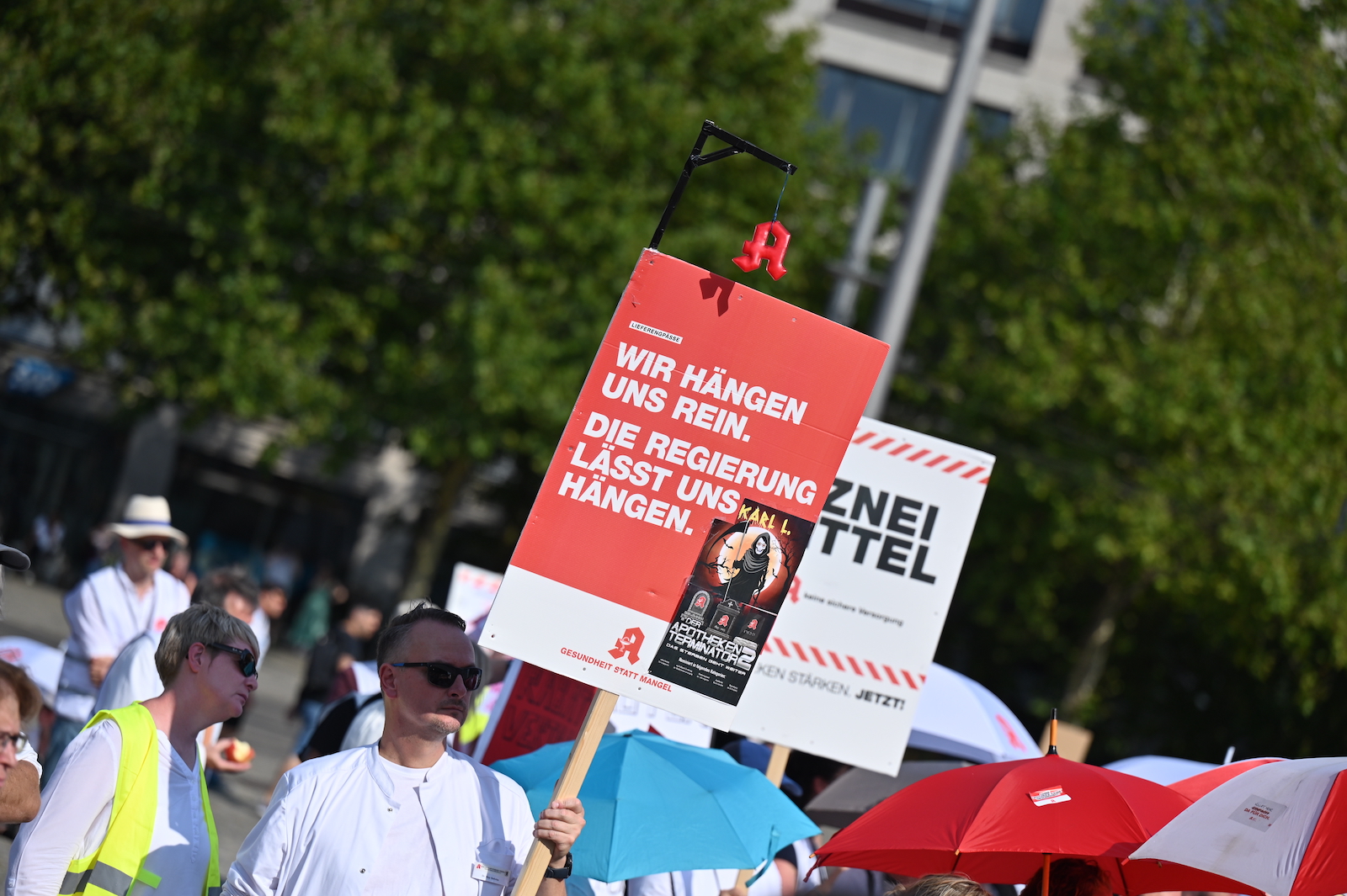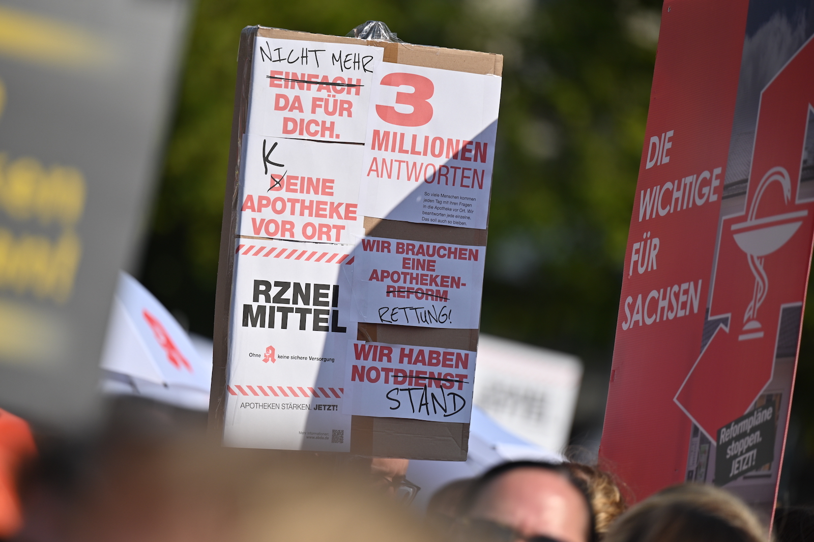 In Dresden und Erfurt wurde heute erneut gegen die Apothekenreform von Bundesgesundheitsminister Karl Lauterbach (SPD) demonstriert. Alleine in der sächsischen Landeshauptstadt kamen nach Polizeiangaben rund 1000 Teilnehmerinnen und Teilnehmer zusammen. Und auch diesmal machten die Apothekenteams ihrer Wut mit kreativen und provokanten Motiven Luft.