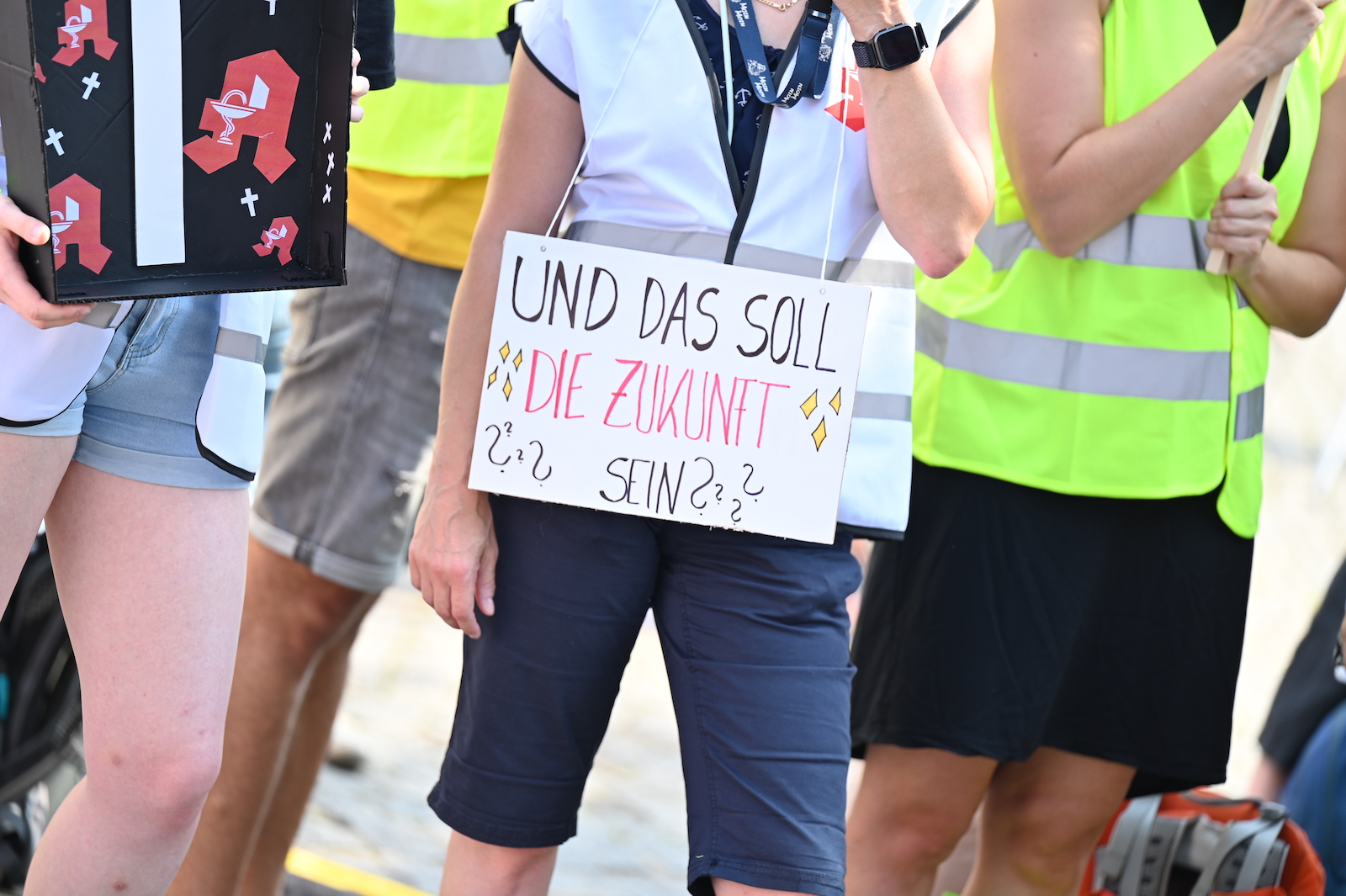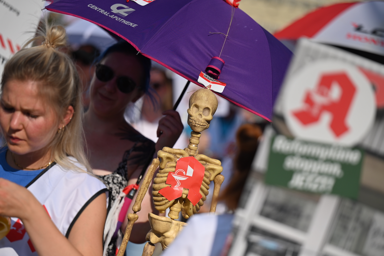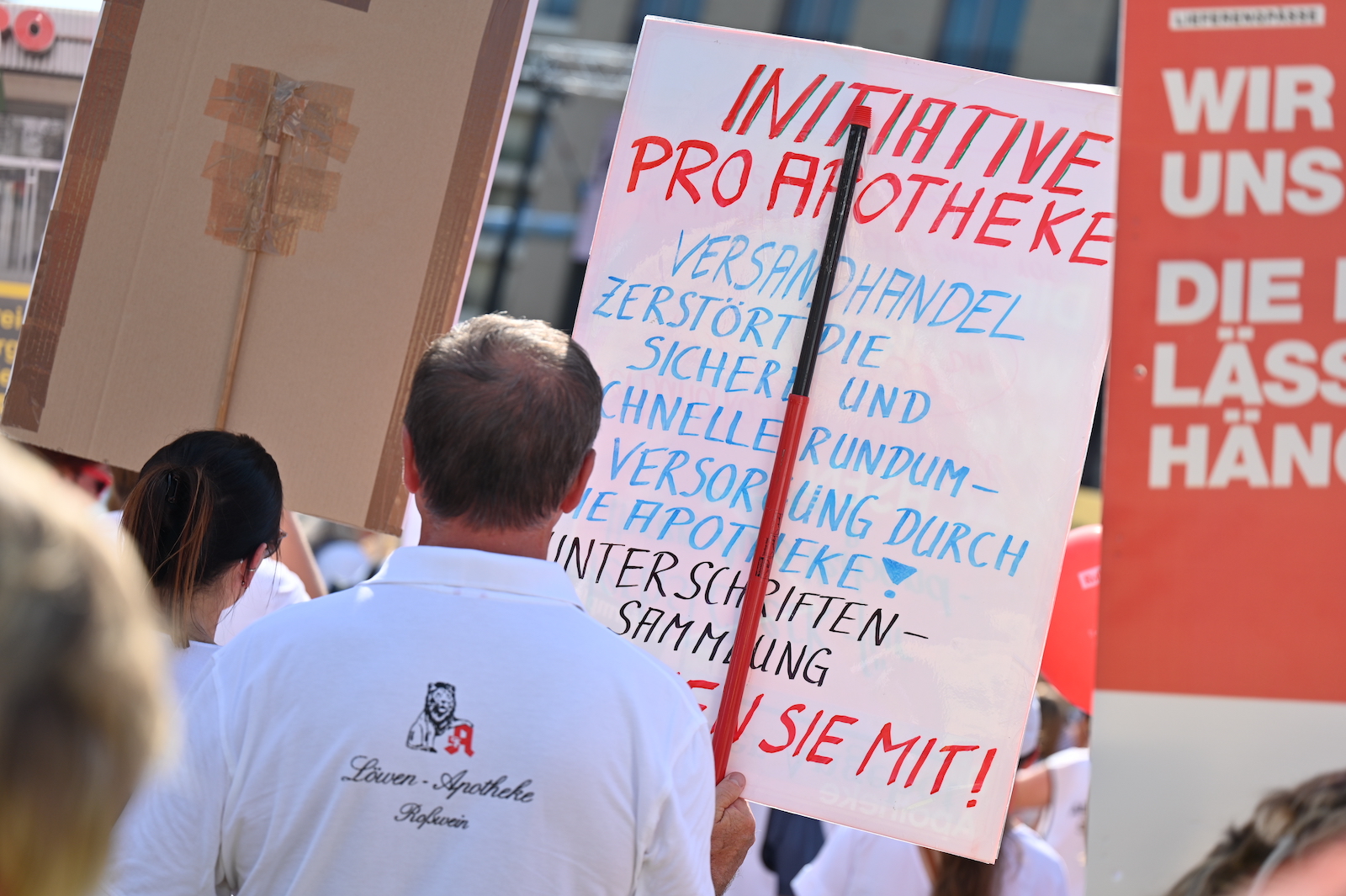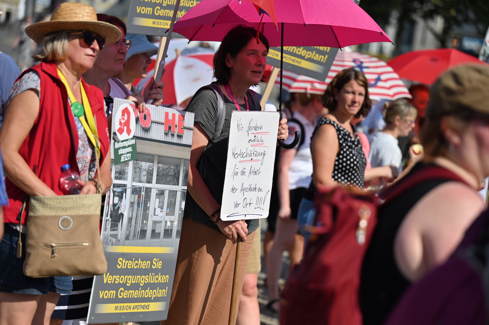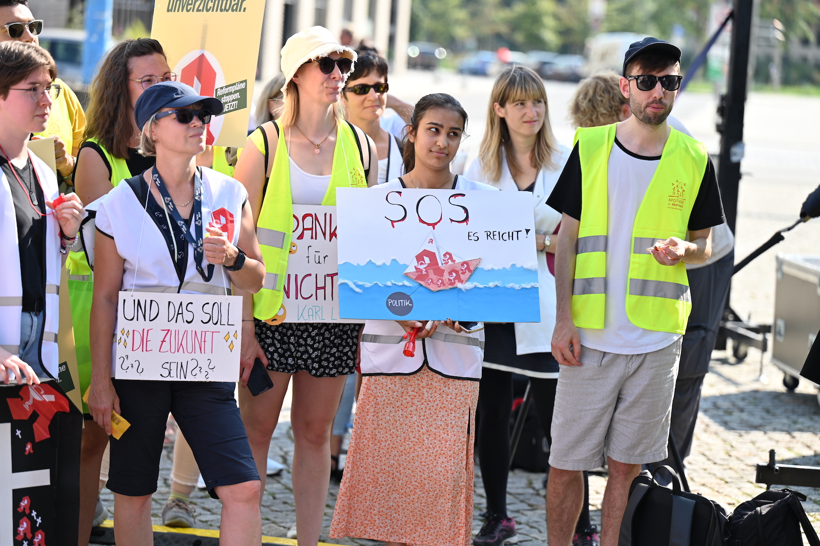 In Dresden und Erfurt wurde heute erneut gegen die Apothekenreform von Bundesgesundheitsminister Karl Lauterbach (SPD) demonstriert. Alleine in der sächsischen Landeshauptstadt kamen nach Polizeiangaben rund 1000 Teilnehmerinnen und Teilnehmer zusammen. Und auch diesmal machten die Apothekenteams ihrer Wut mit kreativen und provokanten Motiven Luft.