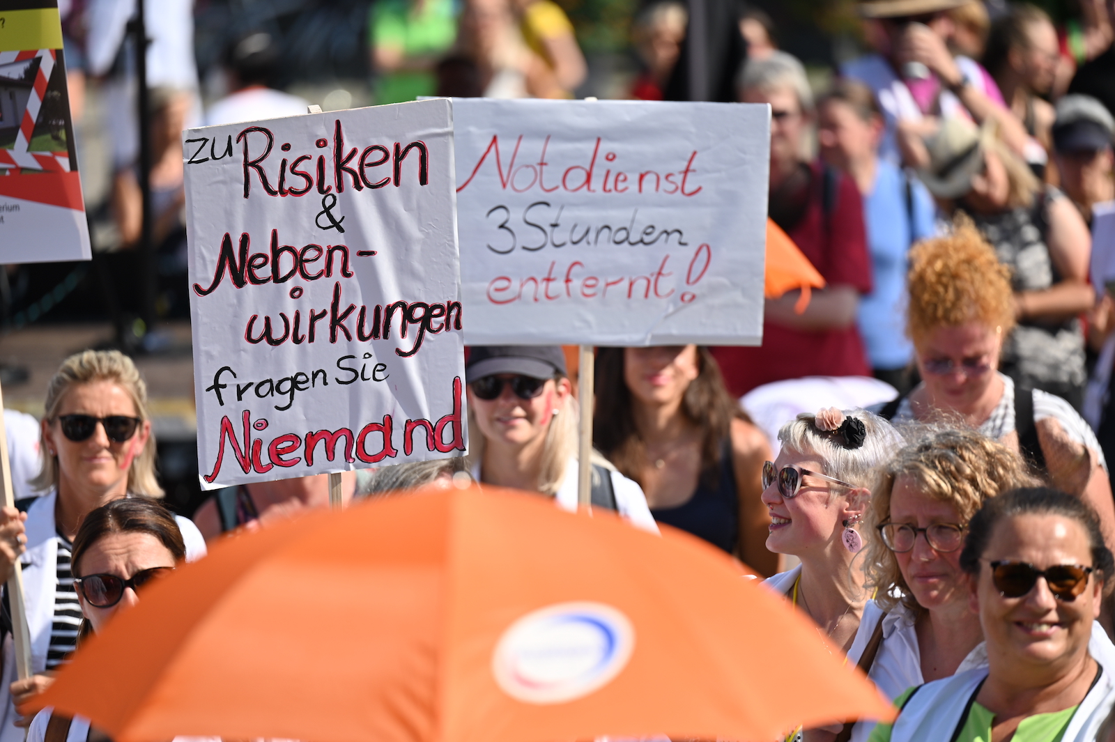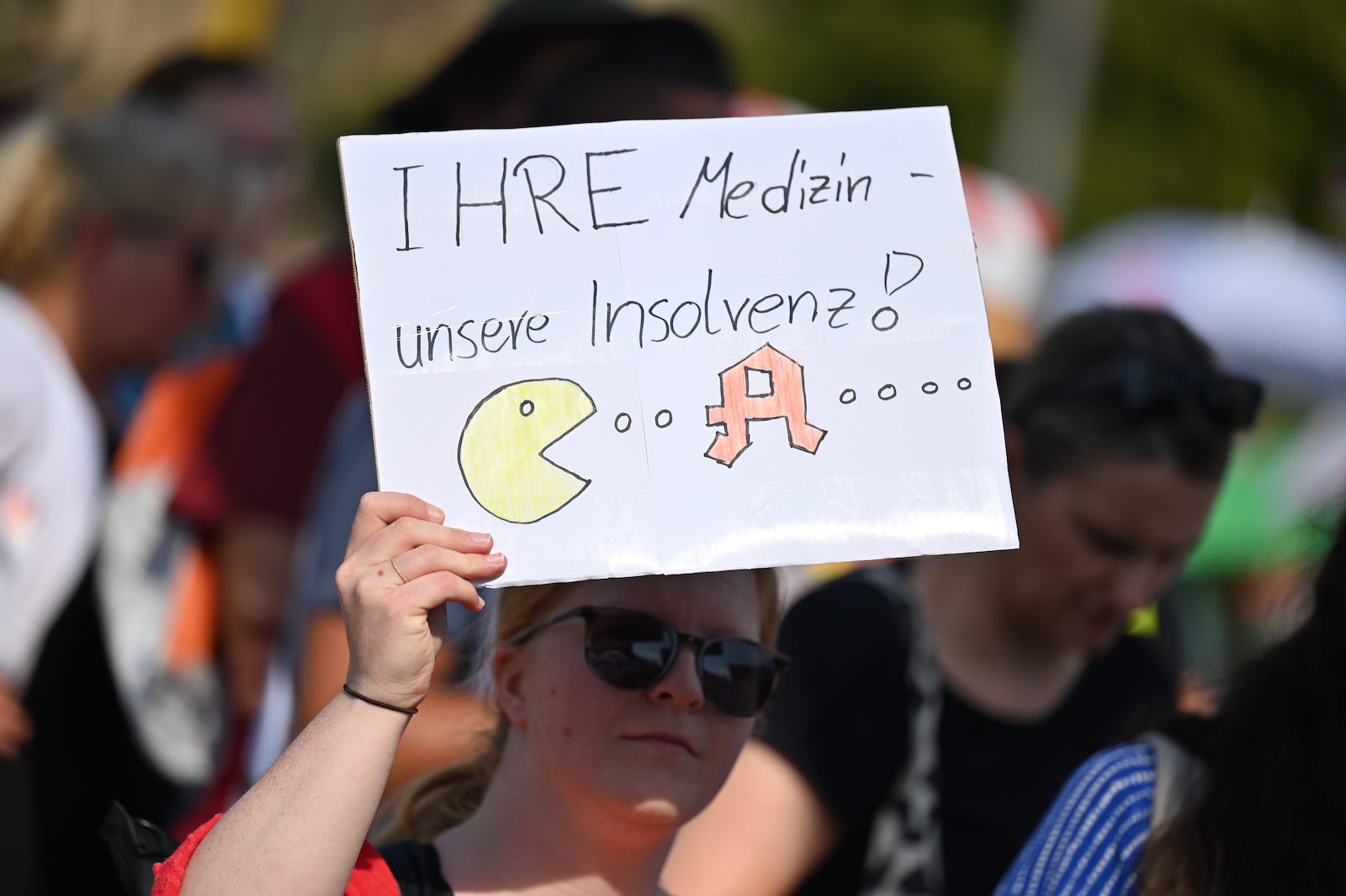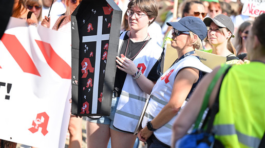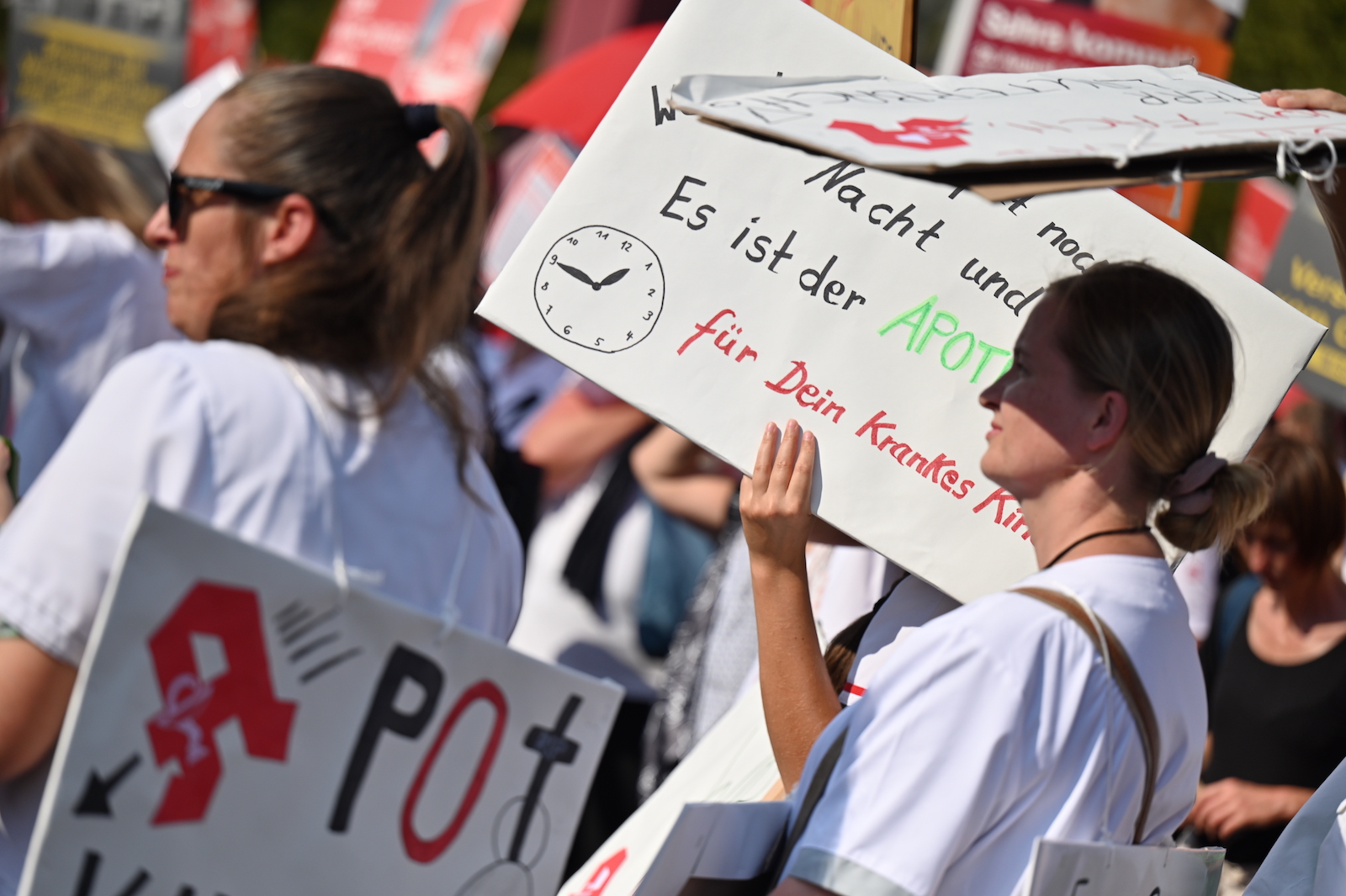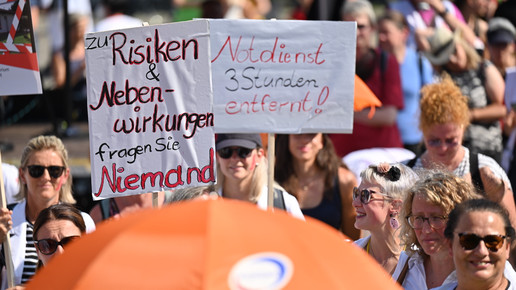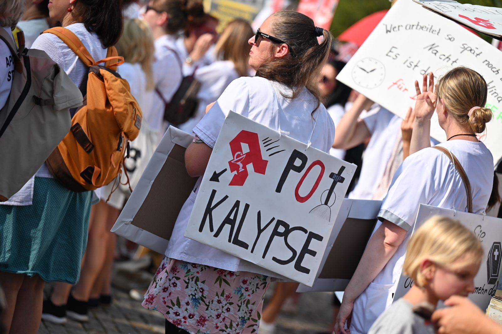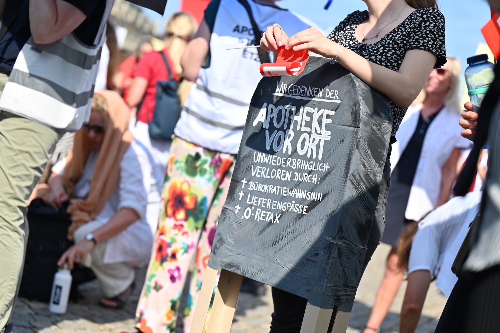 In Dresden und Erfurt wurde heute erneut gegen die Apothekenreform von Bundesgesundheitsminister Karl Lauterbach (SPD) demonstriert. Alleine in der sächsischen Landeshauptstadt kamen nach Polizeiangaben rund 1000 Teilnehmerinnen und Teilnehmer zusammen. Und auch diesmal machten die Apothekenteams ihrer Wut mit kreativen und provokanten Motiven Luft.