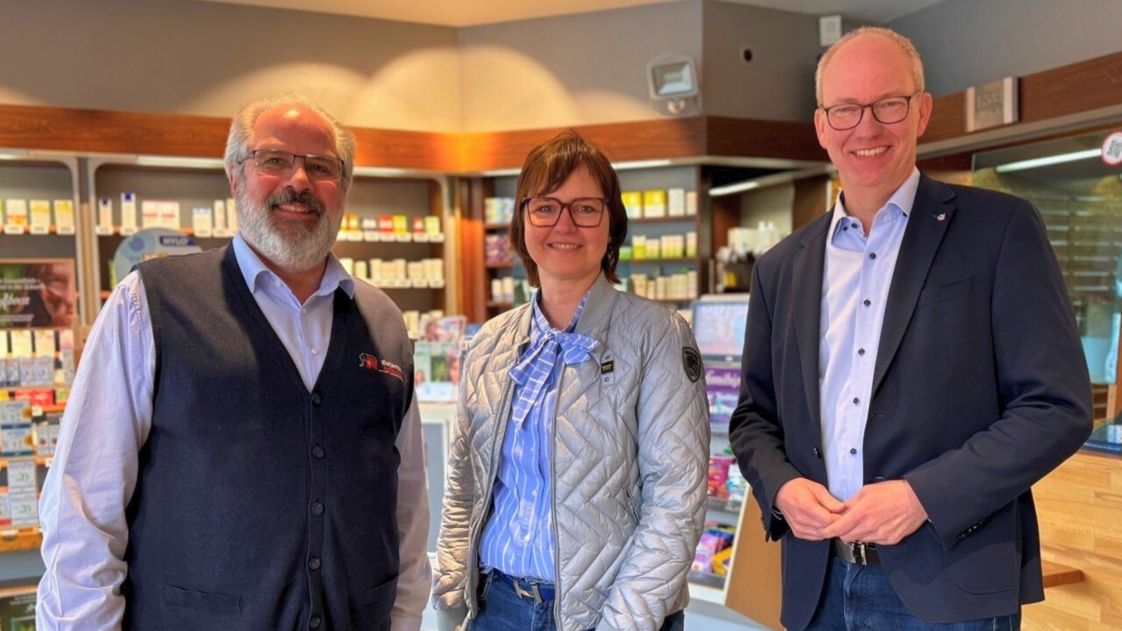 Der NRW-Landtagsabgeordnete Daniel Hagemeier (CDU) hat die Apotheke von Thomas Haddenhorst, dem Vorsitzenden der Bezirksgruppe Warendorf im Apothekerverband Westfalen-Lippe (AVWL), besucht. Mit von der Partie war zudem Stefanie Elpers von der Geschäftsführung des AVWL. Gemeinsam sprachen sie über die aktuelle Situation der Apotheken, die Forderung einer angemessenen Entlohnung für Apothekerinnen und Apotheker sowie das Light-Konzept und die Telematik-Infrastruktur.