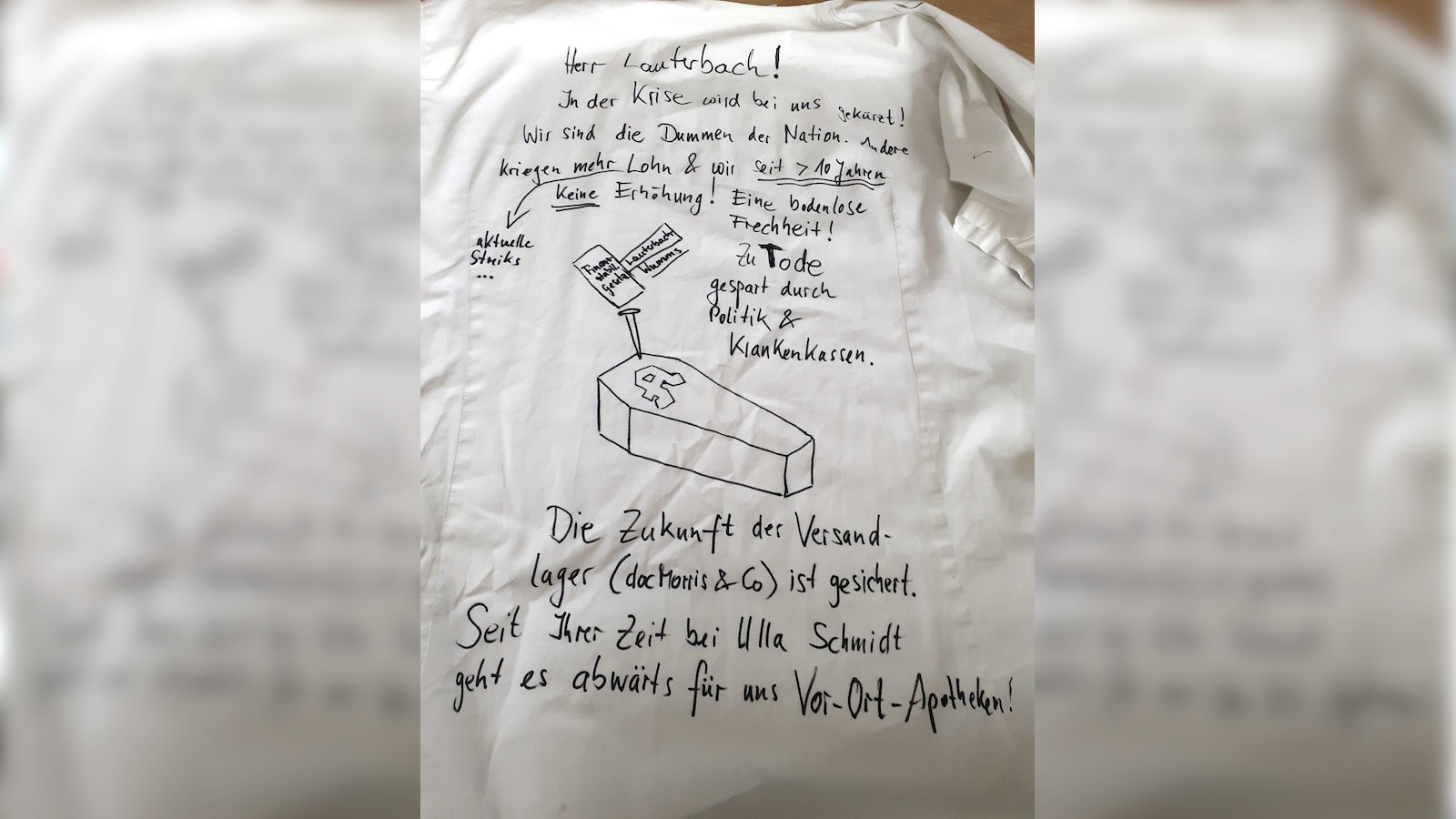 Hänel ist mit dem bisherigen Verlauf zufrieden. Die Resonanz sei sehr gut, sie habe bereits viele Fotos von Kitteln zur Kenntnis bekommen. Die Beschriftungen sprächen den Apothekenteams aus der Seele, teilweise würden die Kittel auch noch aufwendig dekoriert. Sie selbst will tatsächlich ihren letzten Kittel mit nach Berlin nehmen: „Ich werde keinen Kittel mehr in meiner Apotheke tragen, so lange sich nichts ändert.“