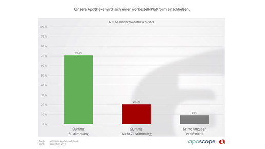 Allerdings sind sich die Apotheker auch im Klaren darüber, dass sie selbst in den Botendienst investieren müssen. Den Standortvorteil gegenüber den Versendern auszuspielen, ist aus Sicht vieler Apotheker die einzige Chance, um auch mit Einführung des E-Rezepts konkurrenzfähig zu bleiben. Mehr als Hälfte (52 Prozent) der Inhaber plant daher, in diesem Jahr den eigenen Botendienst zu stärken. 2020 könnte damit auch den Durchbruch für Apothekenplattformen bringen. 70 Prozent der Inhaber gaben bei der Umfrage an, sich einem Plattformkonzept anzuschließen.