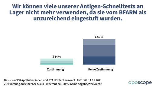 45 Prozent gaben aber auch an, dass sie nach den jüngsten Berichten über ungenügend bewertete Schnelltests auf größere Bestellungen verzichten. Immerhin: Dass vorrätige Schnelltests nicht mehr verwendet werden können, weil sie von den Behörden als unzureichend eingestuft wurden, kommt eher selten vor (14 Prozent).