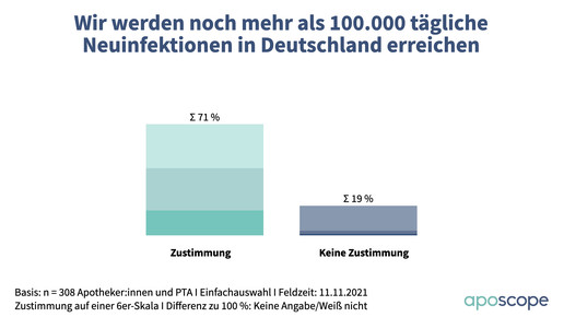 Die Dramatik der aktuellen Lage ist den Apothekenteams sehr bewusst: 71 Prozent rechnen damit, dass noch mehr als 100.000 tägliche Neuinfektionen in Deutschland erreicht werden.