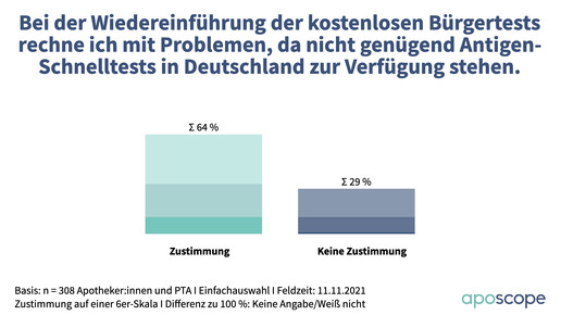 Ab kommender Woche soll es wieder Bürgertests für jedermann geben. Die Apothekenteams finden die Rückkehr zur kostenlosen Testung sinnvoll – rechnen aber mit massiven Problemen, wie eine aktuelle Umfrage von aposcope zeigt.