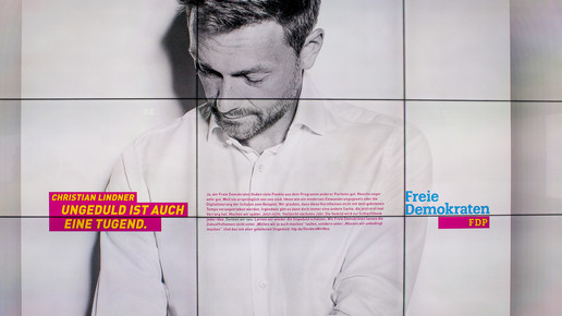 Entsprechend konsequent hat die FDP ihren Bundestagswahlkampf auf den Alleinunterhalter zugeschnitten. Schon die Plakate drücken das aus: Weißes Hemd vor weißem Hintergrund. Ein frisch frisierter Mann schaut in Modelpose nach unten, es sieht so aus, als mache er sich gerade die Manschettenknöpfe zu, um anschließend in den Arbeitstag zu starten. Das Gesicht ist markant beleuchtet, der Drei-Tage-Bart verstärkt die Gesichtskonturen. Die Ästhetik erinnert an Modefotografie, so verkauft die FDP ihren Spitzenmann.