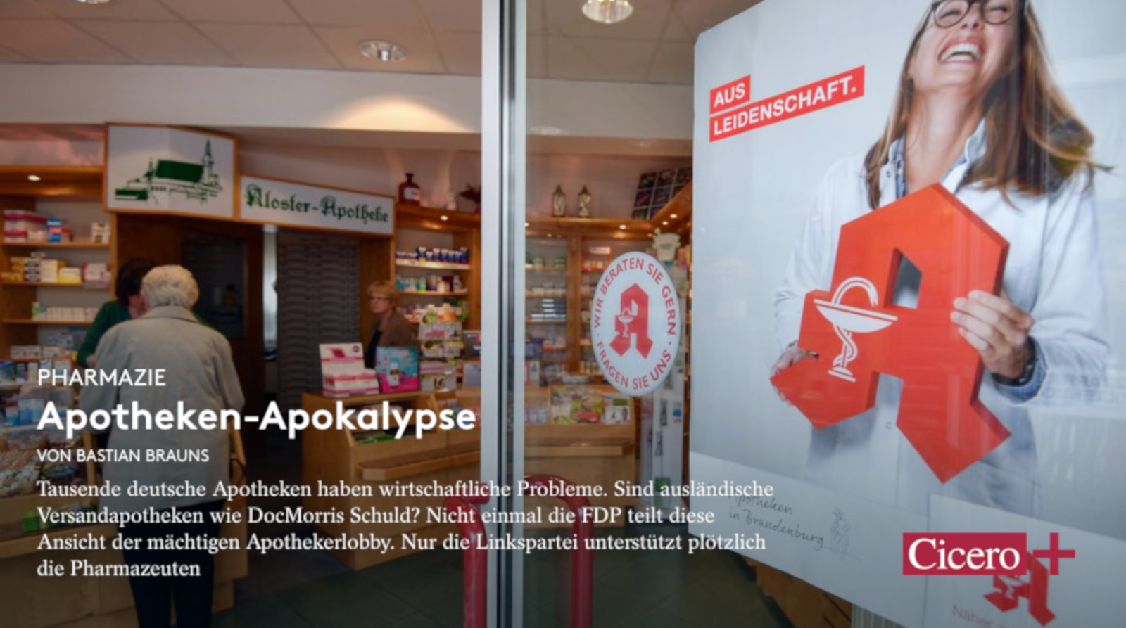 Immer mehr Apotheken vor Ort haben mit wirtschaftlichen Problemen zu kämpfen. Seit Jahren wird der Einfluss der ausländischen Versandapotheken wie DocMorris & Co. diskutiert. Sind sie verantwortlich für die vermeintliche „Apotheken-Apokalypse“? Der Cicero widmet sich dem Thema in seiner aktuellen Ausgabe auf vier Seiten. Im Bericht geht ABDA-Präsident Friedemann Schmidt mit der ehemaligen „Apothekerpartei“ FDP hart ins Gericht. Sie sei nicht mehr „der verlässliche Partner aller freien Berufe“.