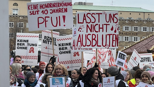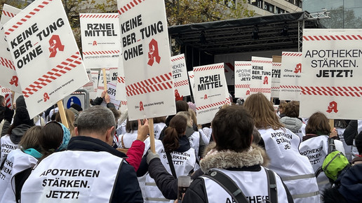 Ausgestattet mit Plakaten und Trillerpfeifen machte Apothekenteams aus Baden-Württemberg und Bayern ihrem Ärger ordentlich Luft. „Heute geschlossen: Wir streiken, weil Karl lügt“, hieß es unter anderem. „Mach deinen Job. Arbeiten statt Twittern, Herr Lauterbach“ und „Heute Apotheke light, morgen Apotheke weg“, waren weitere Botschaften der Tausenden Teilnehmer.