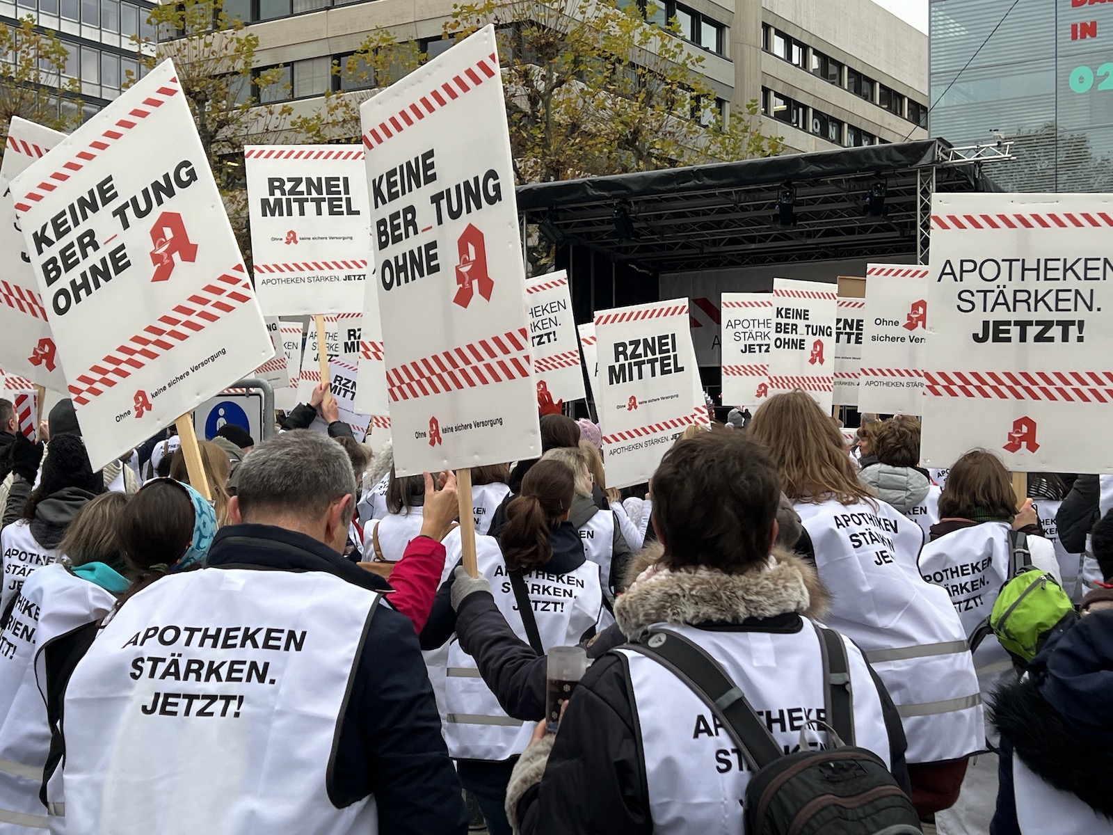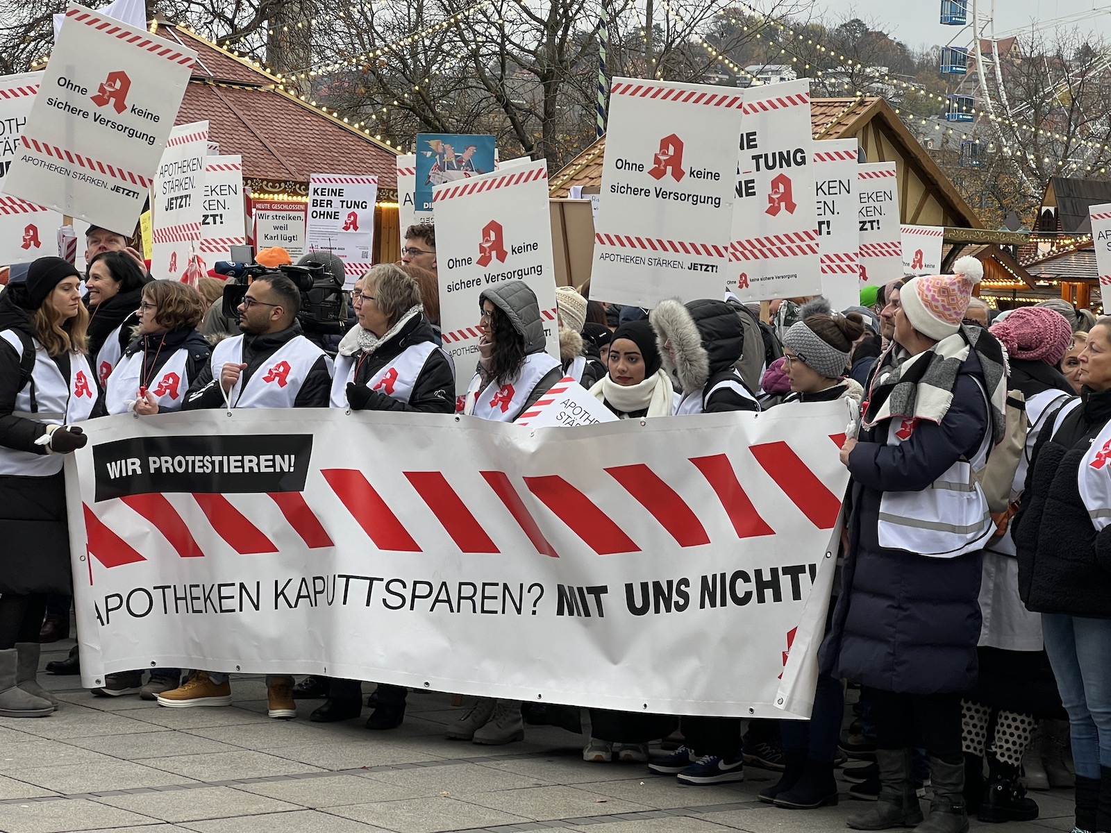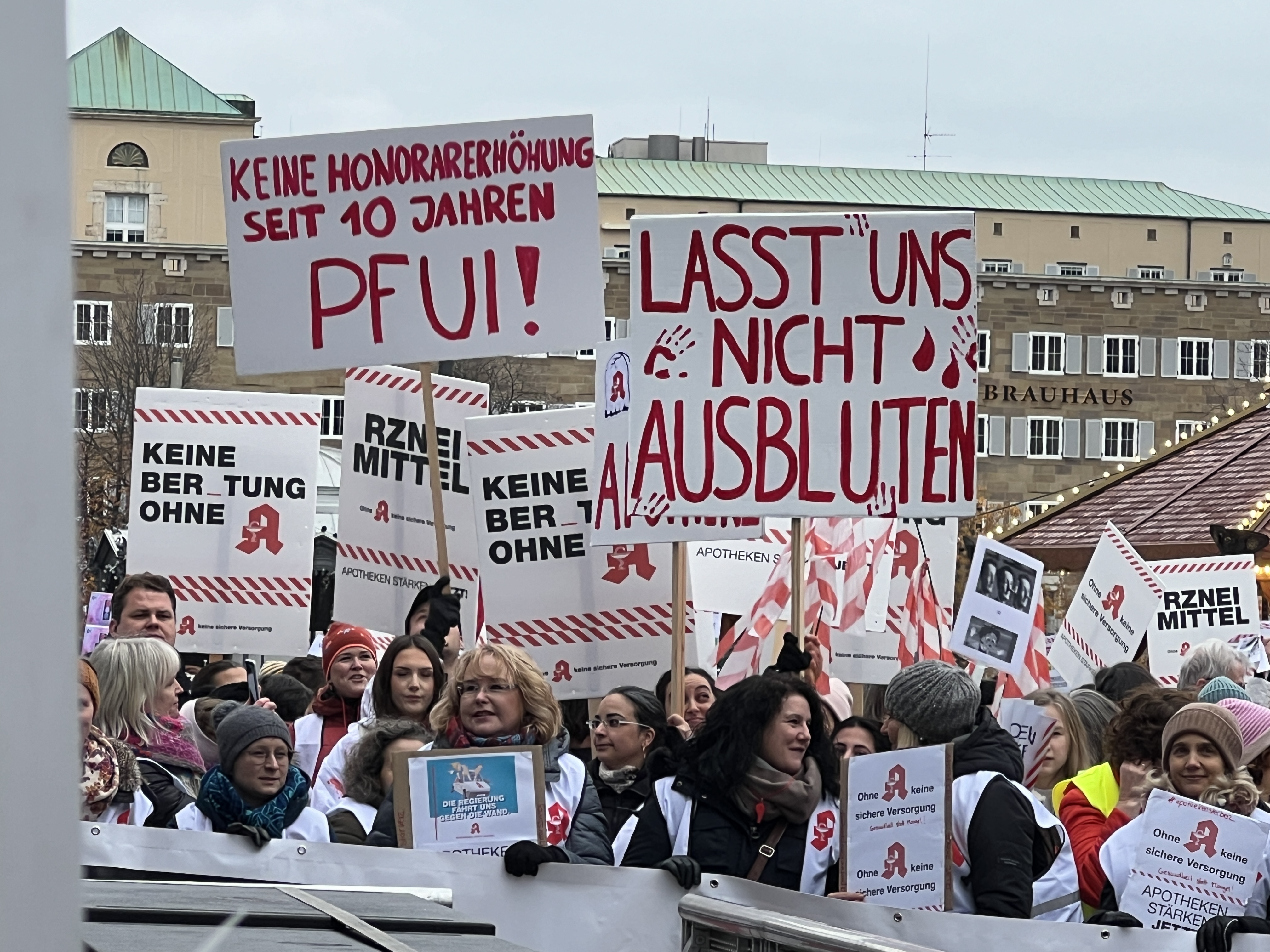 Ausgestattet mit Plakaten und Trillerpfeifen machte Apothekenteams aus Baden-Württemberg und Bayern ihrem Ärger ordentlich Luft. „Heute geschlossen: Wir streiken, weil Karl lügt“, hieß es unter anderem. „Mach deinen Job. Arbeiten statt Twittern, Herr Lauterbach“ und „Heute Apotheke light, morgen Apotheke weg“, waren weitere Botschaften der Tausenden Teilnehmer.