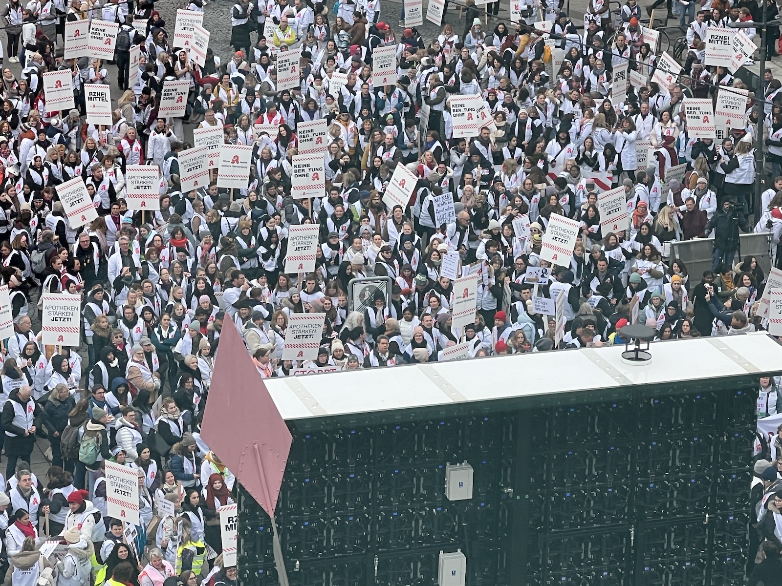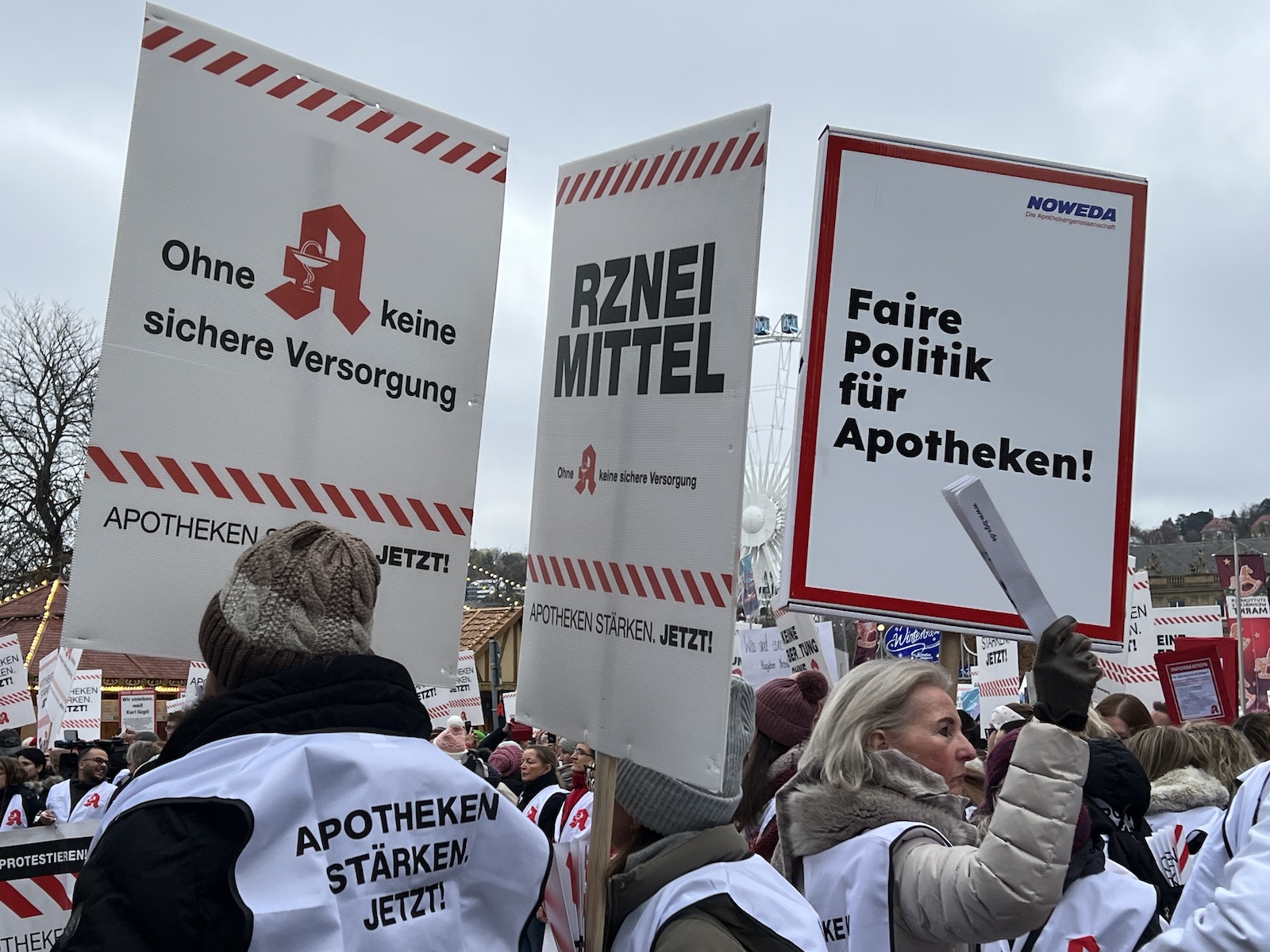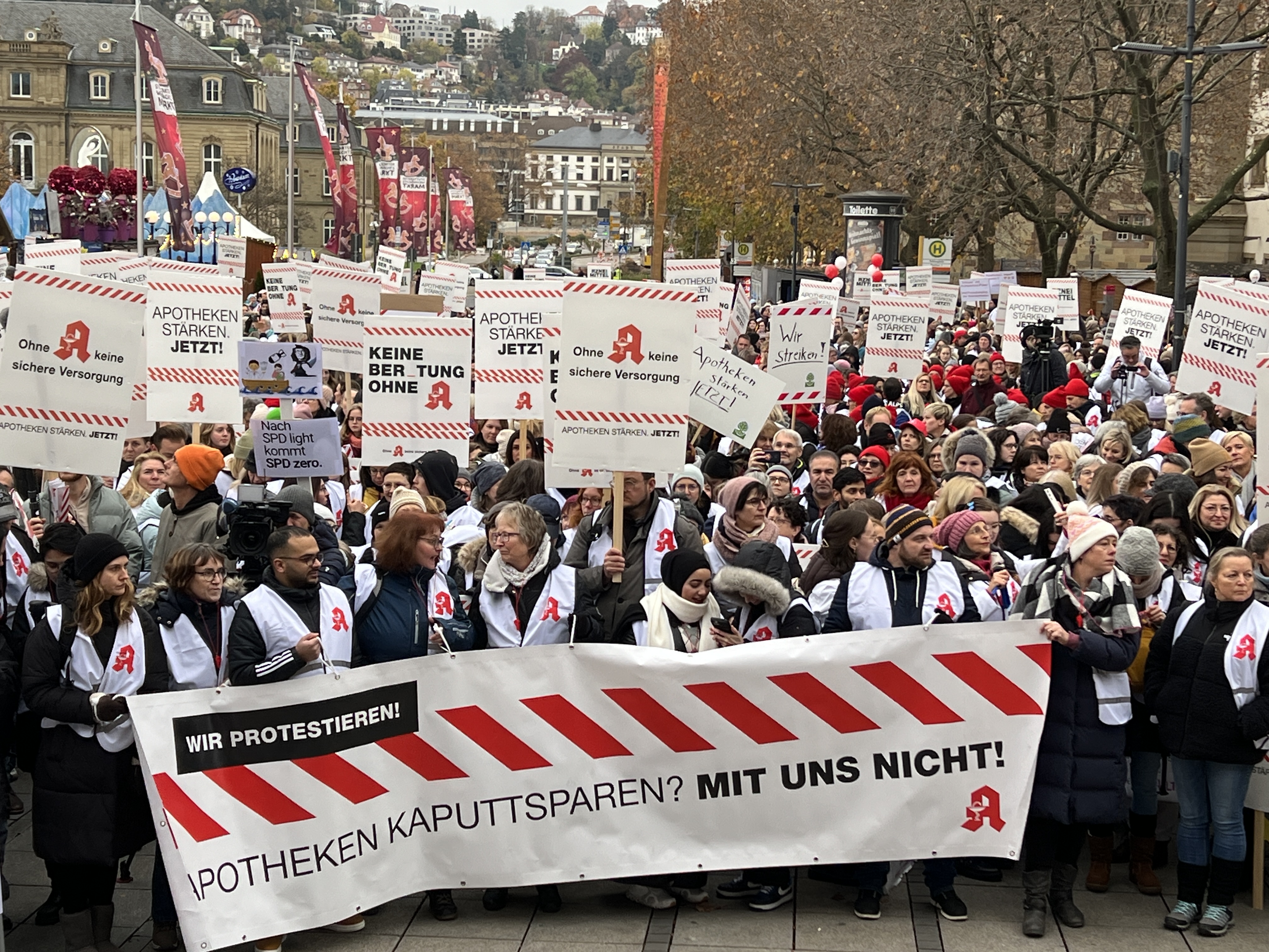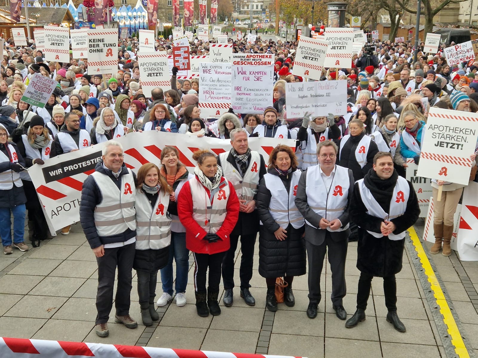 Ausgestattet mit Plakaten und Trillerpfeifen machte Apothekenteams aus Baden-Württemberg und Bayern ihrem Ärger ordentlich Luft. „Heute geschlossen: Wir streiken, weil Karl lügt“, hieß es unter anderem. „Mach deinen Job. Arbeiten statt Twittern, Herr Lauterbach“ und „Heute Apotheke light, morgen Apotheke weg“, waren weitere Botschaften der Tausenden Teilnehmer.