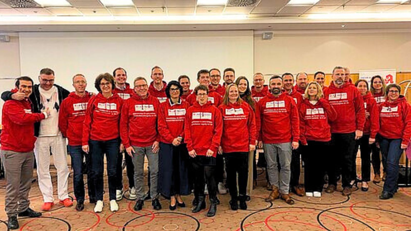 Dazu zeigten sich die Delegierten auch in einheitlichen roten Pullovern.