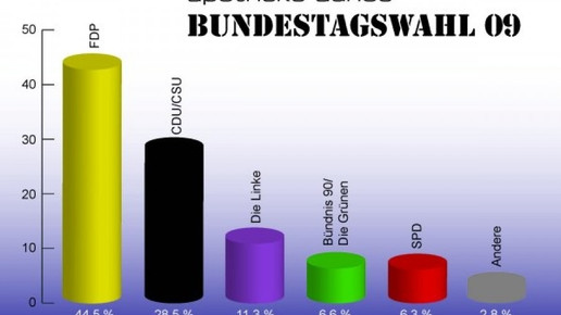Überraschend auf Platz drei kam „Die Linke“ mit 11,3 ins Ziel. Die Grünen erreichten dagegen nur 6,6 Prozent. Einen Achtungserfolg erzielte die Piratenpartei mit 1,5 Prozent der gültigen Stimmen.