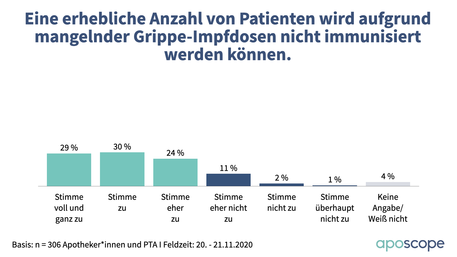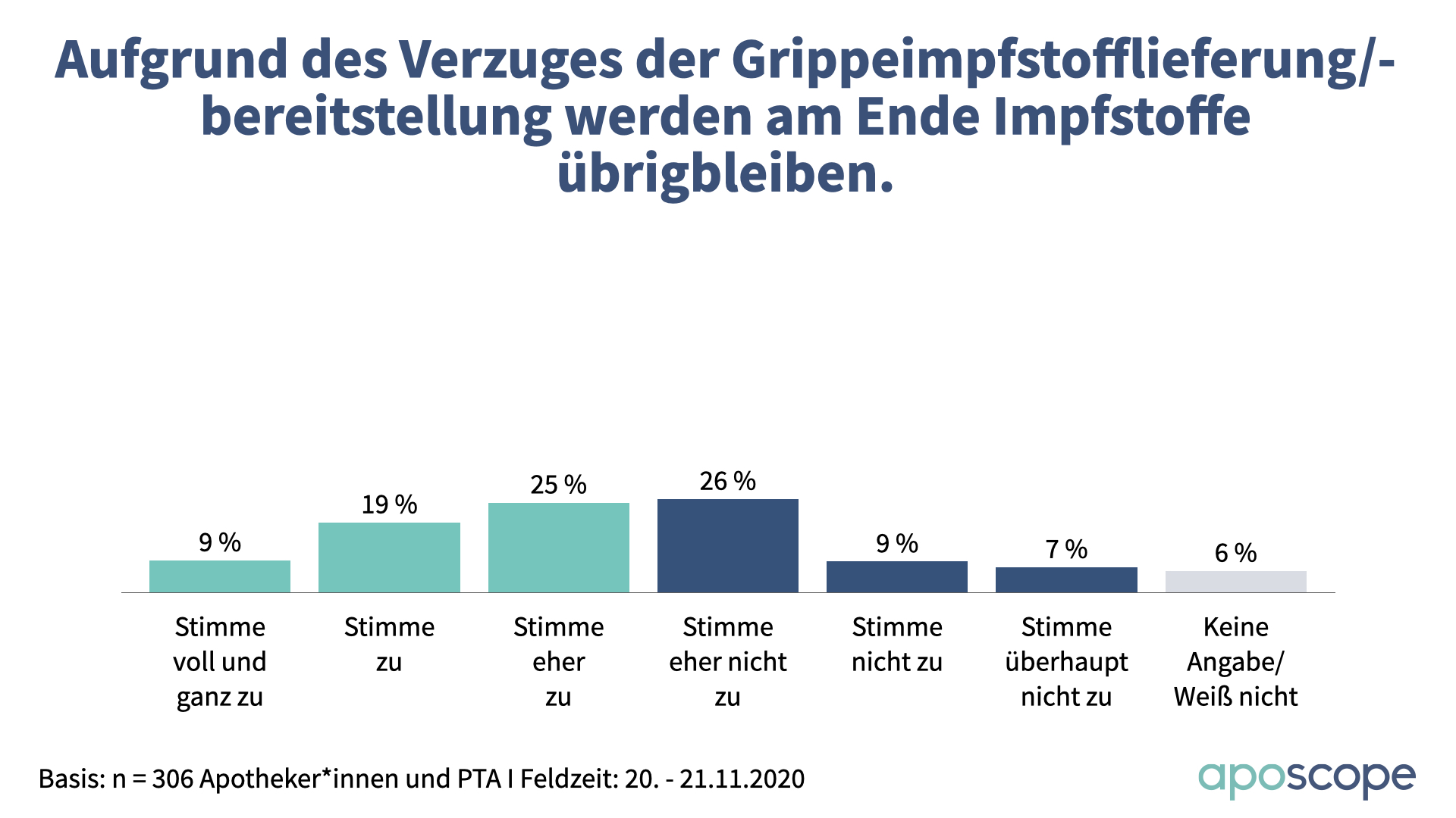 Die Bilanz ist ernüchternd: 83 Prozent der Befragten gehen davon aus, dass eine erhebliche Anzahl von Patienten aufgrund der mangelnden Impfdosen nicht immunisiert werden kann. Gleichzeitig gehen aber 53 Prozent davon aus, dass aufgrund der verzögerten Bereitstellung am Ende Impfstoffe übrig bleiben werden.