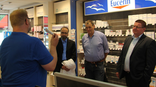 Rund eineinhalb Stunden hat Siemsen Dirk Marx (CDU), Jochen Hanisch (Die Linke) und Dr. Najib Karim (FDP) einen Einblick in den Apothekenalltag gegeben. Der Hamburger Kammerpräsident fragte die Politiker zunächst nach ihren ersten Eindrücken zur Apotheke. Da keiner der „Praktikanten“ in der Gesundheitspolitik tätig ist, verfügten sie über wenig Vorkenntnisse, so Siemsen.