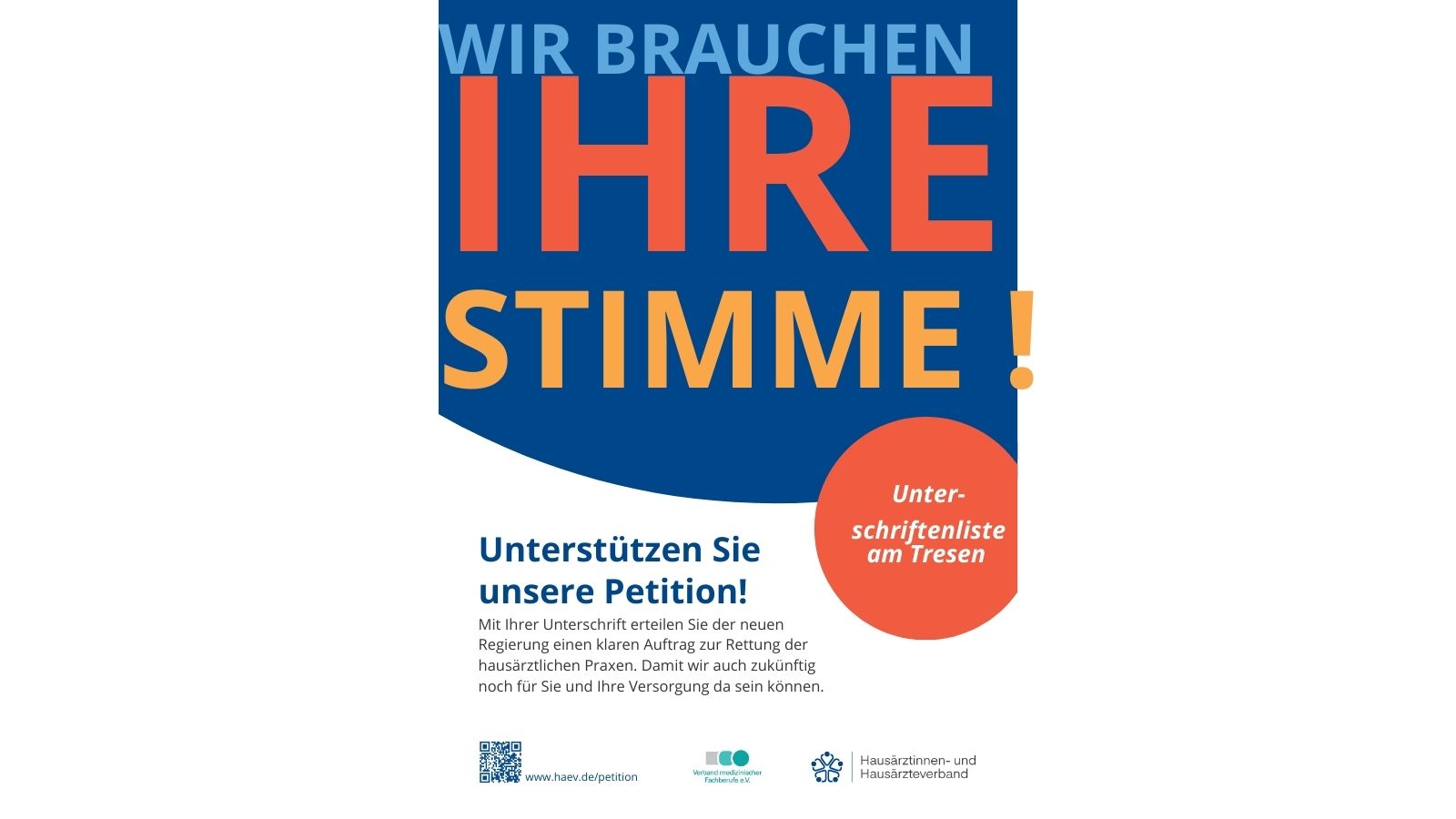 Angesichts der anstehenden Bundestagswahl und der Situation in den Praxen haben der Hausärztinnen- und Hausärzteverband (HÄV) sowie der Verband medizinischer Fachberufe (vmf) die Kampagne „Wir brauchen Ihre Stimme!“ ins Leben gerufen. Per Petition sollen Unterschriften für die Rettung der hausärztlichen Versorgung gesammelt werden.