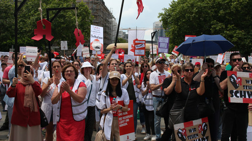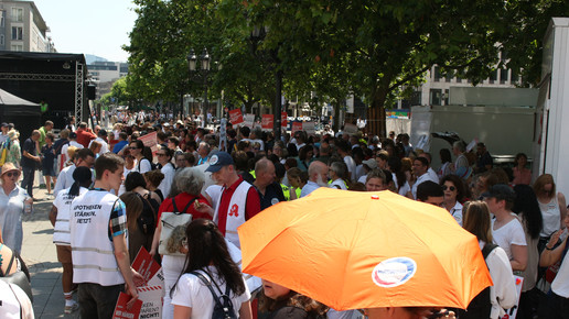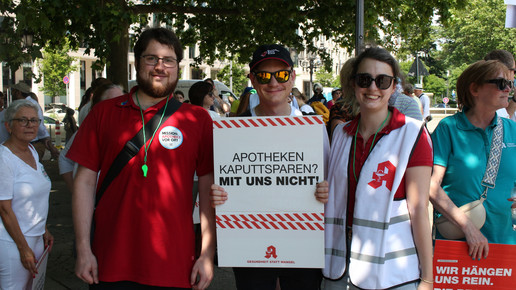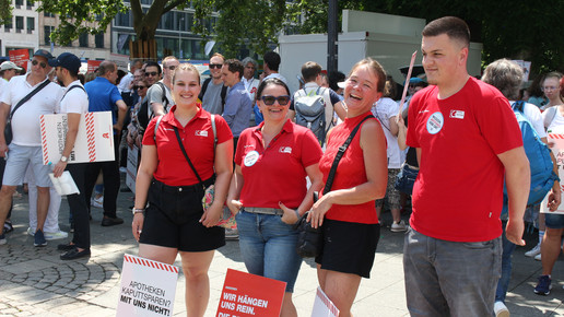 Seit heute Morgen wird in Hessen gegen das Apothekenreformgesetz (ApoRG) demonstriert. Ab 12 Uhr haben sich dazu Dutzende Apothekenteams auf dem Opernplatz in Frankfurt zur bevorstehenden Kundgebung versammelt. Viele der Teilnehmenden trugen Kittel oder weiße Warnwesten mit dem Apotheken-A und machten mit eigens erstellten Plakaten auf ihre Haltung aufmerksam. Die Protestierenden fordern angesichts der gestiegenen Betriebs- und Personalkosten eine deutlich bessere Vergütung. Außerdem sprechen sie sich geschlossen gegen das Konzept der Apotheken ohne Apotheker:innen aus. Auch morgen bleiben die Apotheken in Hessen geschlossen.