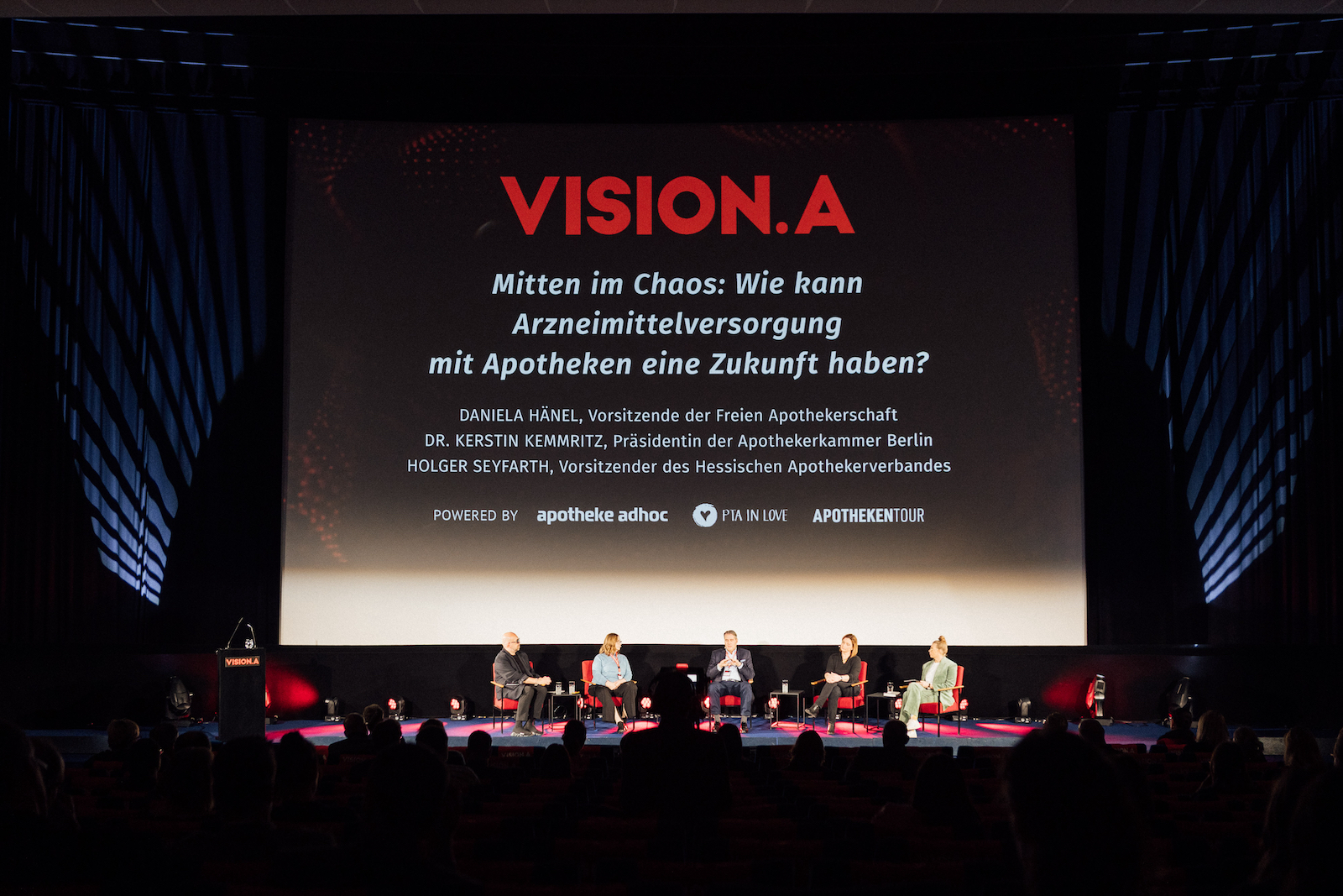 Neun mal 90 Sekunden wurden Wut, Enttäuschung, Ratlosigkeit aber auch Hoffnungsschimmer auf der VISION-A.-Bühne von Standesvertreter:innen geteilt. In der anschließenden politischen Debatte sprachen Daniela Hänel, selbstständige Apothekerin und Vorsitzende der Freien Apothekerschaft, Dr. Stefan Hartmann, der erste Vorsitzende des Bundesvorstands Deutscher Apothekenkooperationen (BVDAK) und Dr. Kerstin Kemmritz, Vorsitzende der Apothekerkammer Berlin und Inhaberin der Falkenapotheke in Weißensee. Lesen Sie den Ticker zur Veranstaltung hier nach.