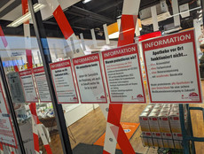Die Apotheke hat die Fenster mit Absperrbändern dekoriert; außerdem hat das Team von Inhaberin Dr. Katja Scarlett Daub zahlreiche eigene Poster gestaltet und aufgehängt.