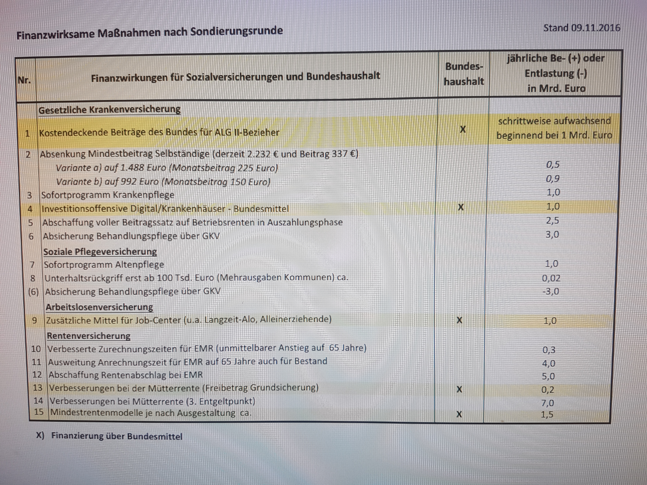 Bereits am vergangenen Freitag hatten sich die Unterhändler im Bereich Gesundheit auf einige Grundsätze verständigt. Vor allem die Pflege soll verbessert werden und mehr Geld erhalten. Die Jamaika-Sondierer wollen auch das „Schulgeld für die Ausbildung in den Heilberufen abschaffen, so wie es in den Pflegeberufen bereits beschlossen wurde“, heißt es im Konsensteil.