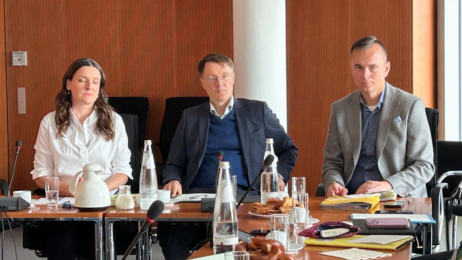 Mit etwas Verspätung traf Lauterbach zum Gespräch um kurz nach 13 Uhr ein – blieb aber für die versprochene Stunde. Neben den Wahlkreisabgeordneten Johannes Arlt, Wiebke Papenbrock und Herbert Wollmann, die zehn Apothekerinnen und Apotheker zum Gespräch geladen hatten, war auch der für die Reform zuständige Abteilungsleiter Thomas Müller anwesend.