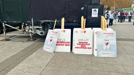 Man habe bewusst als LAV nicht zu Streik und Schließungen aufgerufen – Patient:innen sollen nicht noch mehr leiden, sie leiden jetzt schon genug. Jeden Tag kämpfen wir gegen die Lieferengpässe, das nimmt den Großteil der Zeit ein, pDL können nicht geleistet werden – mit aktuellem Personalstand.
