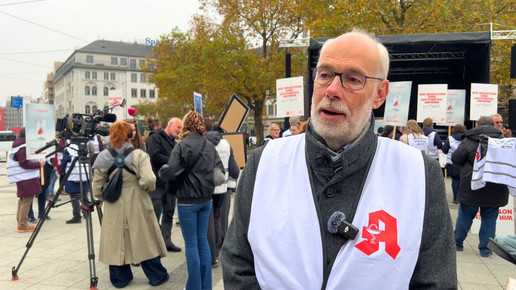 „Unsere Demokratie lebt davon, dass Leute, die etwas zu sagen haben, es auch sagen.“ Darum sei es gut, dass die Apotheker:innen heute auf die Straßen gehen.