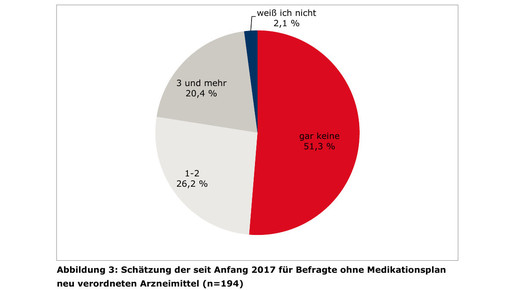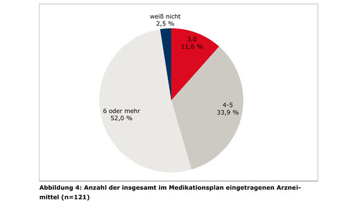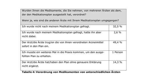 Mit der Übernahme apothekenpflichtiger Medikamente in die Liste tun sich die Ärzte schwer: Mehr als 84 Prozent der Studienteilnehmer gaben an, dass diese Mittel im Medikationsplan nicht ergänzt wurden. Die von ihnen verordneten Arzneimittel trugen die Ärzte dagegen bei etwa der Hälfte der Befragten sofort in den Plan ein. Der Analyse zufolge wurden zudem 43 Prozent aller Befragten mit Medikationsplan nicht darauf hingewiesen, den Plan auch zum Besuch anderer Ärzte mitzunehmen und gegebenenfalls ergänzen zu lassen.