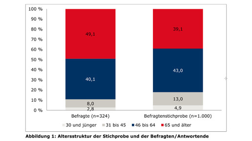 Im Rahmen der Untersuchung sollten die Versicherten einen vierseitigen Fragebogen beantworten, eine schriftliche Erinnerung bekamen sie nicht. Vollständig wurden die Fragen von 324 Patienten ausgefüllt. Es fiel auf, dass gegenüber der Altersverteilung der Stichprobe überproportional viele Versicherte ab 65 Jahre an der Studie teilgenommen haben. Deutlich seltener wurde die schriftliche Befragung von Patienten unter 45 Jahren ausgefüllt.