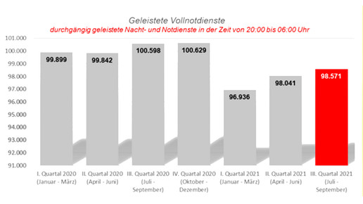 Nach vorliegenden Meldungen der Landesapothekerkammern (LAK) wurden laut NNF im dritten Quartal insgesamt 98.571 Vollnotdienste gemeldet, die in 18.436 Apotheken absolviert wurden. Zum Vergleich: Im zweiten Quartal waren es 98.041, im ersten Quartal 96.936. Die Zahlen liegen durchweg unter denen des Vorjahres.