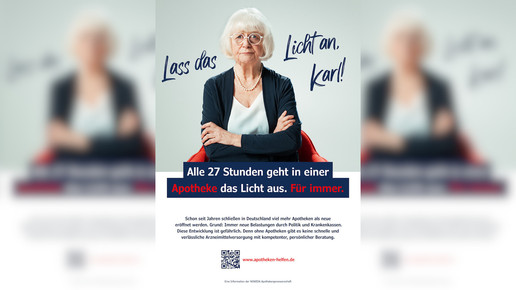 „Apotheken sterben leise. Von der Öffentlichkeit kaum wahrgenommen, haben in den letzten Jahren tausende ihre Türen für immer geschlossen“, erklärt die Noweda ihre Kampagne. Die Folgen für die flächendeckende, wohnortnahe Gesundheitsversorgung seien aber dramatisch. Motive und Videoclips sollen dies aus Perspektive verschiedener Zielgruppen verdeutlichen.