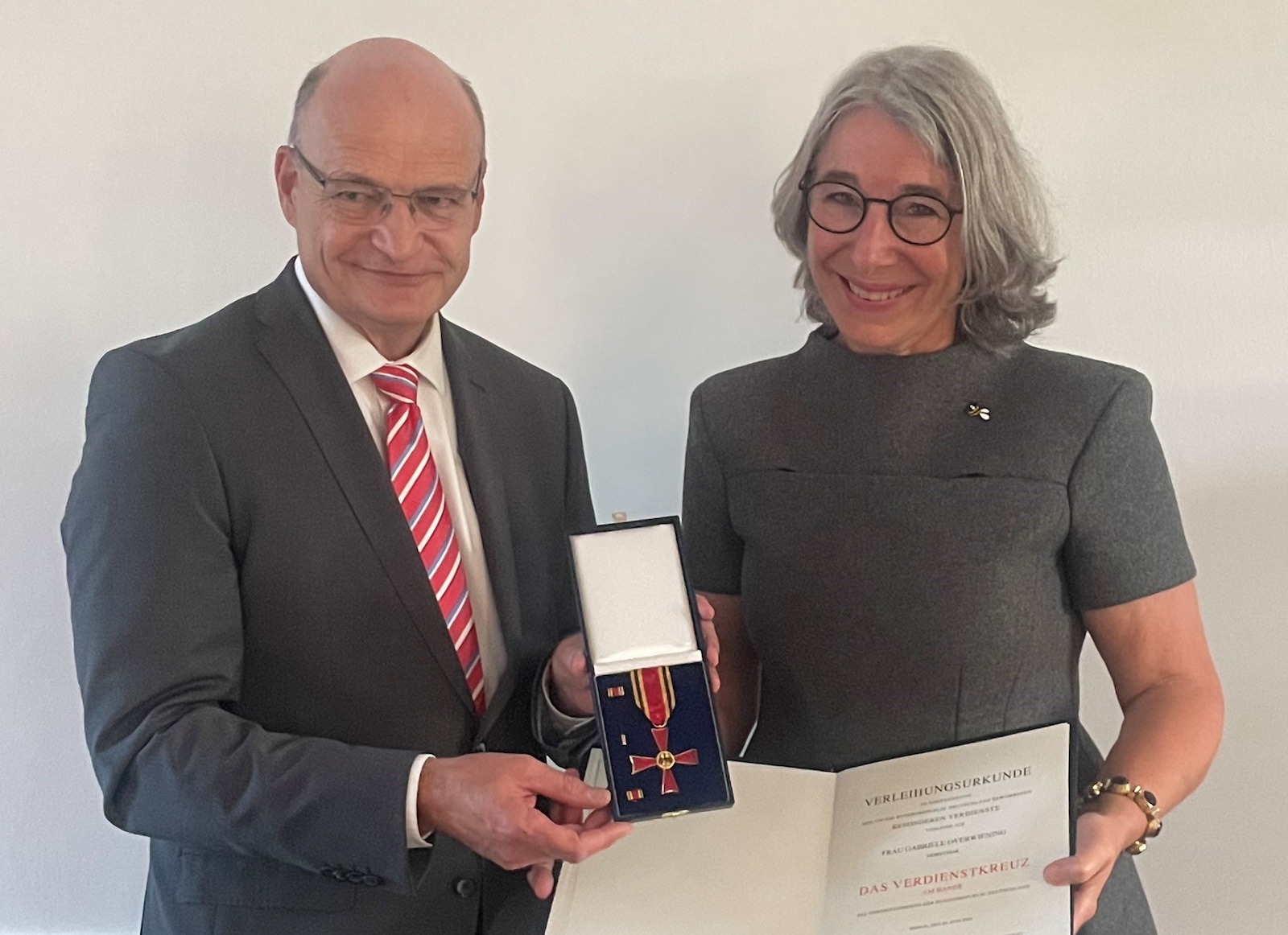Gabriele Regina Overwiening, Präsidentin der Apothekerkammer Westfalen-Lippe und der Abda, ist für ihr jahrzehntelanges Engagement von Bundespräsident Frank-Walter Steinmeier auf Vorschlag des NRW-Ministerpräsidenten Hendrik Wüst (CDU) mit dem Verdienstkreuz am Bande des Verdienstordens der Bundesrepublik Deutschland ausgezeichnet worden.