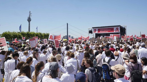 Die größte Veranstaltung war die Kundgebung auf dem Burgplatz in Düsseldorf. Hier versammelten sich ab 11 Uhr nach Angaben des Apothekerverbands Nordrhein (AVNR) rund 7500 Teilnehmerinnen und Teilnehmer. Es war die erste Großveranstaltung, die bekannt gemacht wurde: Verbandschef Thomas Preis war vorgeprescht und hatte die Demo schon am 17. Mai angekündigt.