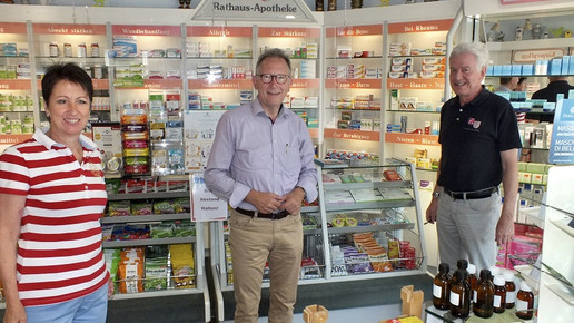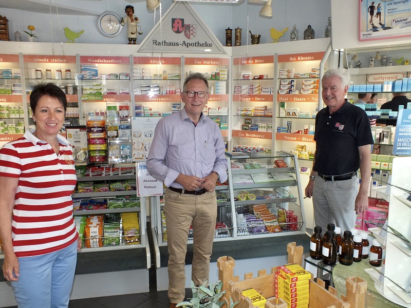 Der Vorsitzende des Gesundheitsausschusses des Bundestages, Erwin Rüddel (CDU), will die Apotheken vor Ort stärken und erneut das Rx-Versandverbot auf die Tagesordnung setzten, falls die EU-Kommission sich nicht bis zum Herbst zum im Apothekenstärkungsgesetz (VOASG) geplanten Rx-Boniverbot äußert. „Die Vor-Ort-Apotheke ist nicht nur in Zeiten der Pandemie systemrelevant. Zu einer guten flächendeckenden Gesundheitsversorgung gehören auch die Apotheken, deren Arbeit wir jetzt besonders stärken werden. Die Apotheke vor Ort ist ein Stück Heimat“, erklärte der heimische CDU-Bundestagsabgeordnete Rüddel anlässlich eines Informationsbesuchs in der Irlicher Rathaus-Apotheke gegenüber Inhaber Michael Solbach.