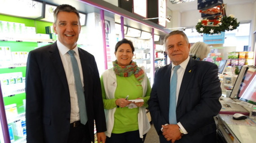 Der Deutsche Apothekerverband (DAV) und sein Landesapothekerverband Nordrhein hätten auf seine Hilferufe nicht reagiert, berichtet der Apotheker. Schummer schon: Gemeinsam mit dem Landtagsabgeordneten Marcus Optendrenk (CDU) besuchte Schummer zu Wochenbeginn die Sebastian-Apotheke in Nettetal. „Apotheken sind aus einer funktionierenden Daseinsvorsorge nicht wegzudenken“, sicherte der Willicher Bundestagsabgeordnete Schummer seine Unterstützung zu. Das umfasse auch die wohnortnahe Patientenversorgung von Krebspatienten.