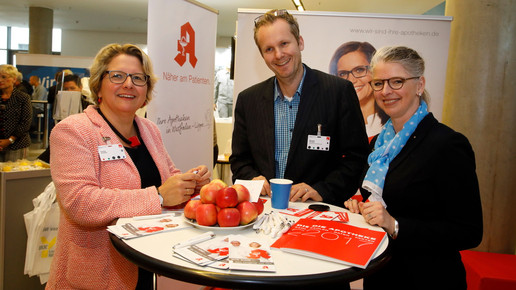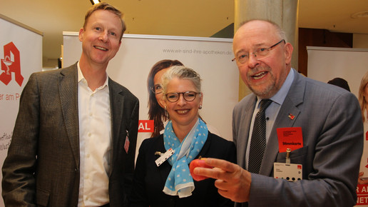 An den Stand gelockt wurden die Delegierten mit Bio-Äpfeln als gesunde Give-Aways sowie mit einem Foto-Automaten, bei dem sich die Delegierten ein Erinnerungsfoto mitnehmen konnten – natürlich gebrandet mit dem roten Apotheken-A und dem Absender „Ihre Apotheken in Westfalen-Lippe“. Im Kongresssaal kam kein Delegierter an Infos zur den Leistungen der Apotheke vor Ort vorbei: Die Tagungstaschen standen ganz im Zeichen des roten A und des bundesweiten Kampagnen-Mottos #unverzichtbar.