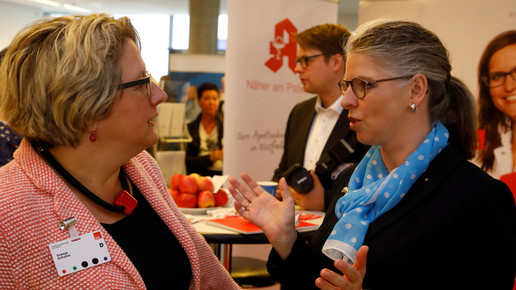 Ganz oben auf der Agenda stand in den Gesprächen die Bedeutung des im Koalitionsvertrag vereinbarten Rx-Versandverbots. „Wir benötigen das Verbot, damit die Apotheken vor Ort auf Dauer überleben – ob in der Stadt, in strukturschwachen Regionen oder auf dem Lande“, erklärten Dieckerhoff und Krude vielen Sozialdemokraten. Am Stand waren unter anderem die neue Umweltministerin Svenja Schulze und ihre Amtsvorgängerin Barbara Hendricks, der neuen SPD-Landeschef Sebastian Hartmann sowie Gesundheitsexperte Professor Dr. Karl Lauterbach.