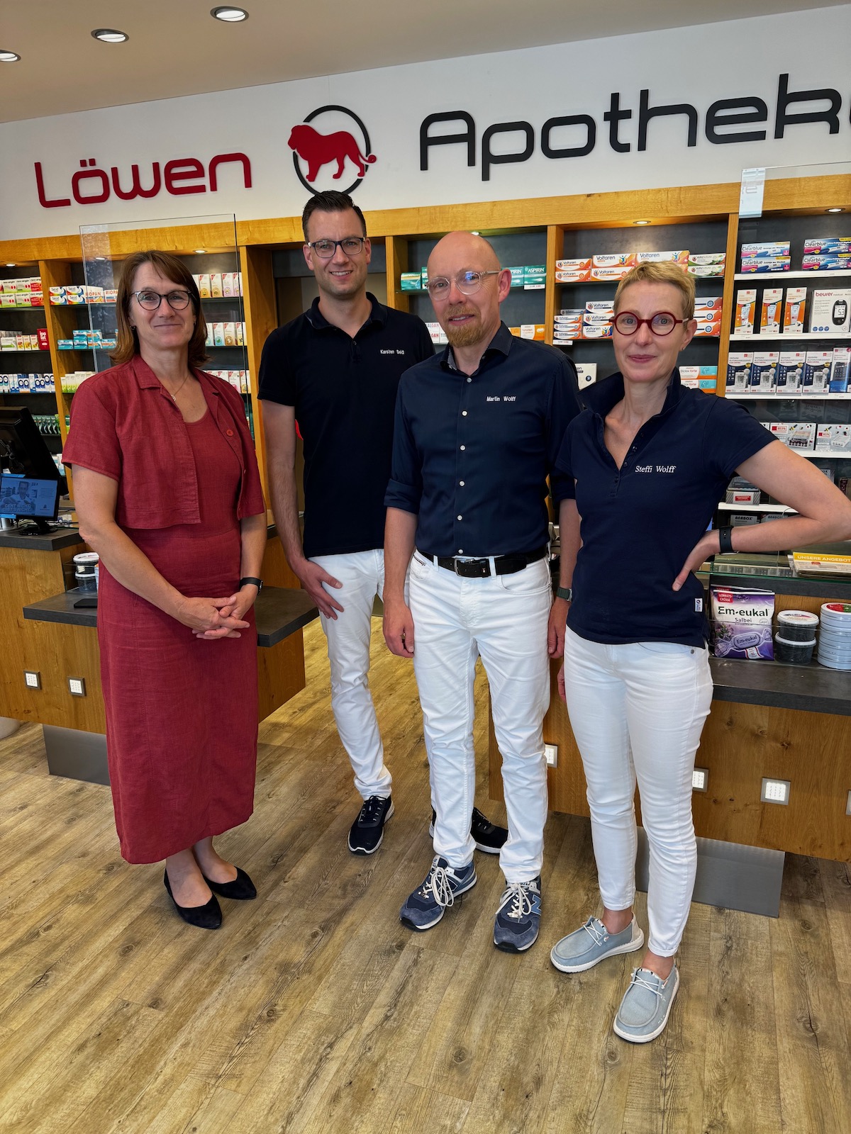 Im Gespräch mit Inhaber Martin Wolff und den Angestellten erfuhr die SPD-Politikerin von den aktuellen Sorgen der Branche „Wir brauchen nach 20 Jahren endlich eine faire Anpassung unserer Vergütung. Der Gesetzentwurf zielt allein auf eine Kostenreduktion, die am Ende Qualitätseinbußen in der Versorgung bedeutet“, erklärte er. Der Apotheker schilderte die Pläne von Bundesgesundheitsminister Karl Lauterbach (SPD), Apotheken ohne Approbierte zu betreiben. Dies bedrohe viele familienfreundliche Arbeitsplätze, so Wolff. Seine Frau, Apothekerin Steffi Wolff, die in Langenweddingen die Linden-Apotheke leitet, betont: „Wir können Probleme schon lösen, ehe sie überhaupt zum Tragen kommen.“