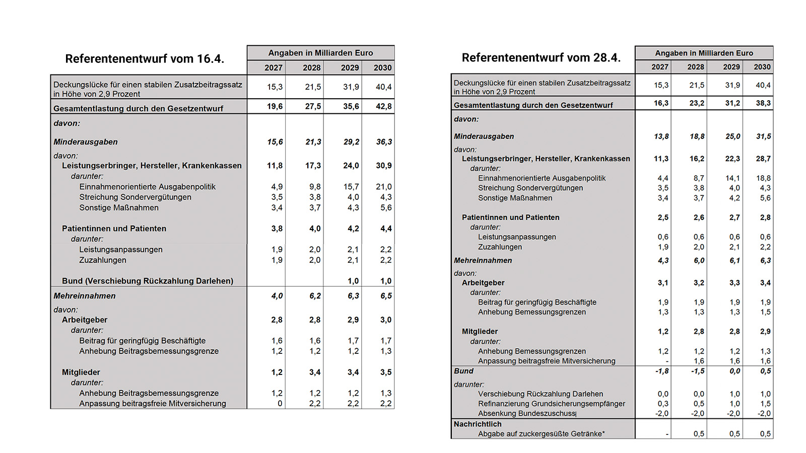 Die Hauptlast des Sparpakets tragen nach wie vor die Leistungserbringer. Hier will die Ministerin im kommenden Jahr insgesamt rund 11,3 Milliarden Euro einsparen. Bis 2030 sollen die Einsparungen auf 18,8 Milliarden ansteigen.